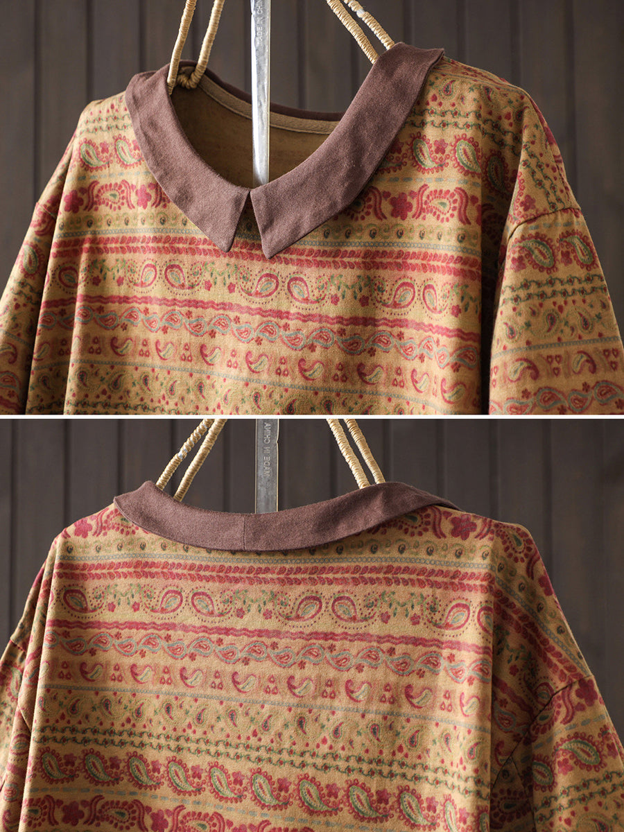 Women Summer Vintage Turn-down Collar 100%Cotton Blouse
