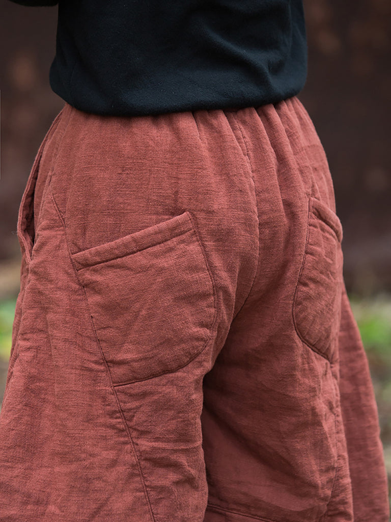 Women Vintage Autumn Solid Spliced Padded Harem Pants