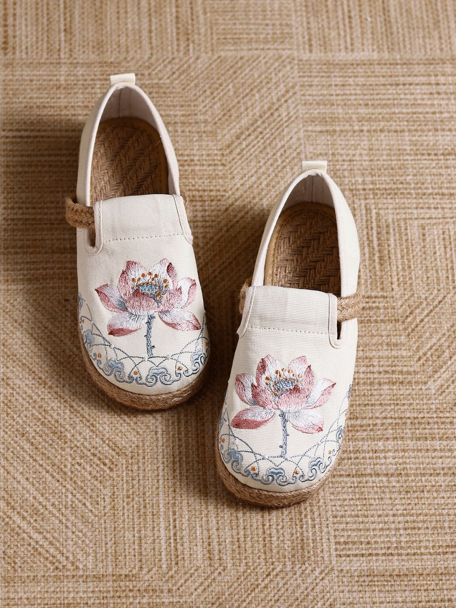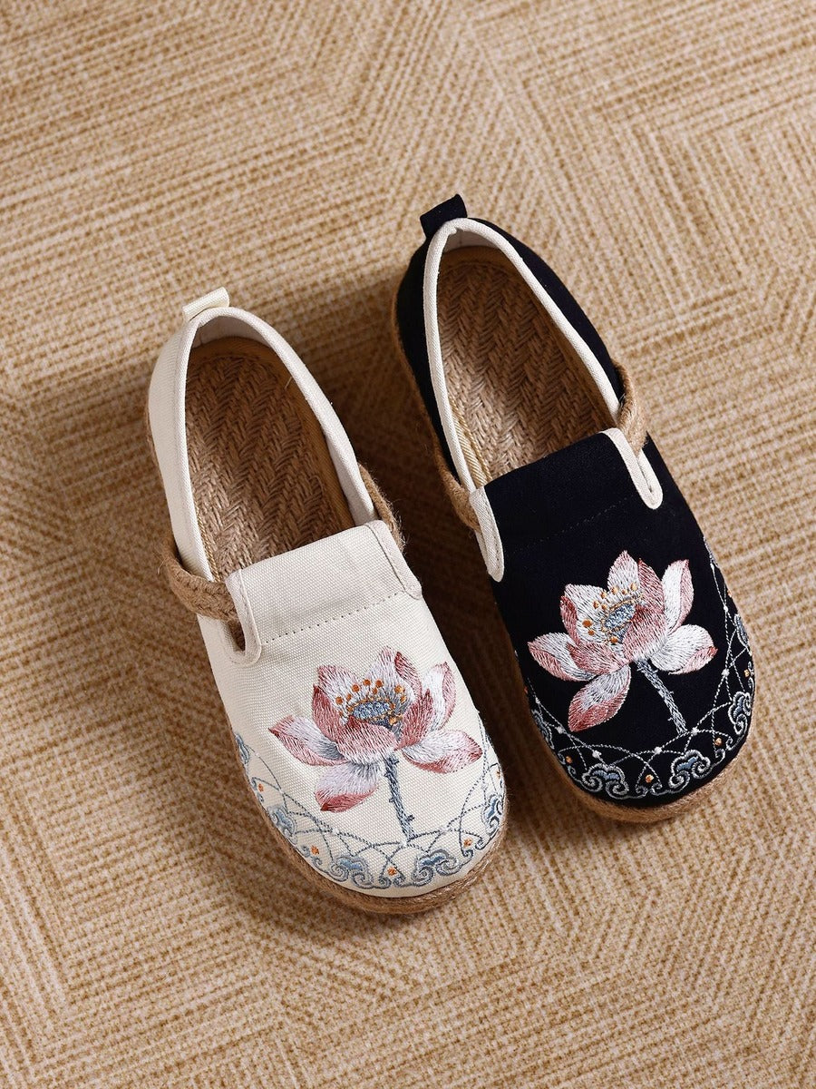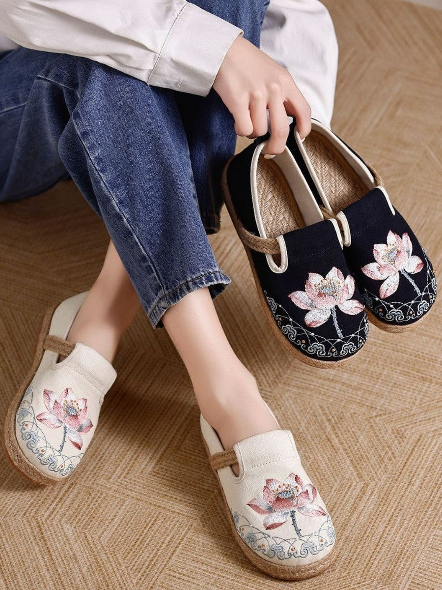 Women Vintage Ethnic Embroidered Cotton Linen Flats