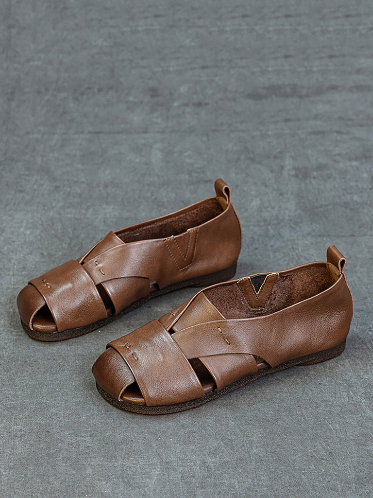 Women Vintage Genuine Leather Flat Sandals