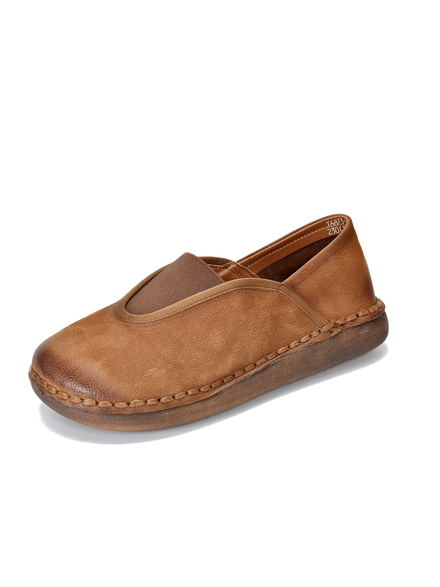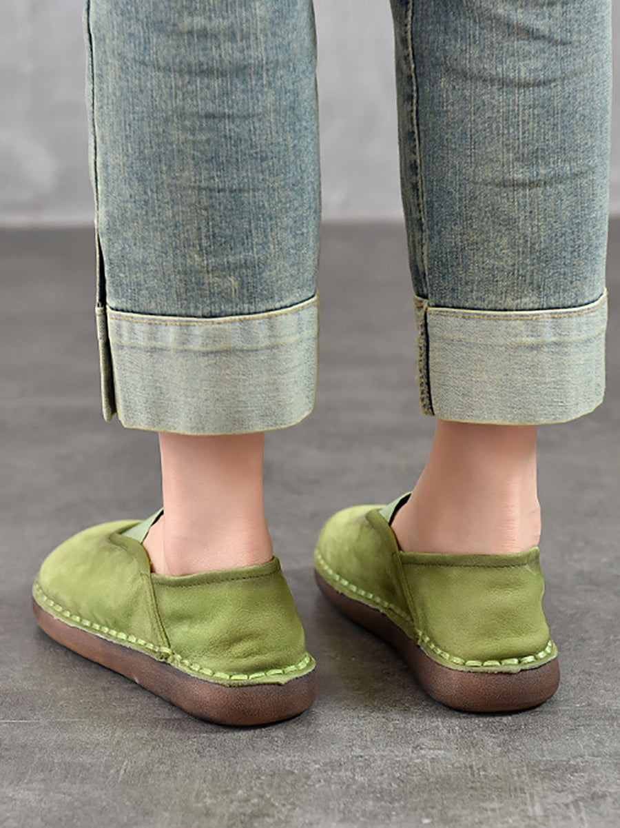 Women Vintage Genuine Leather Spliced Flat Shoes