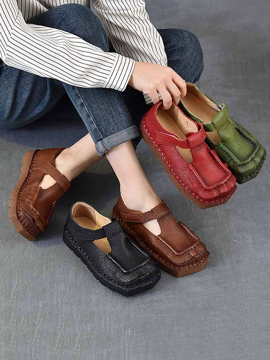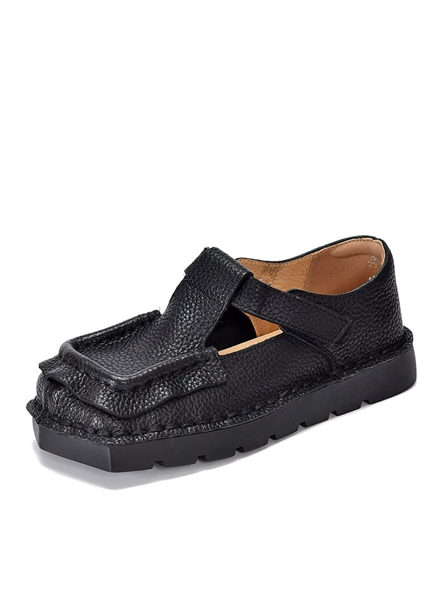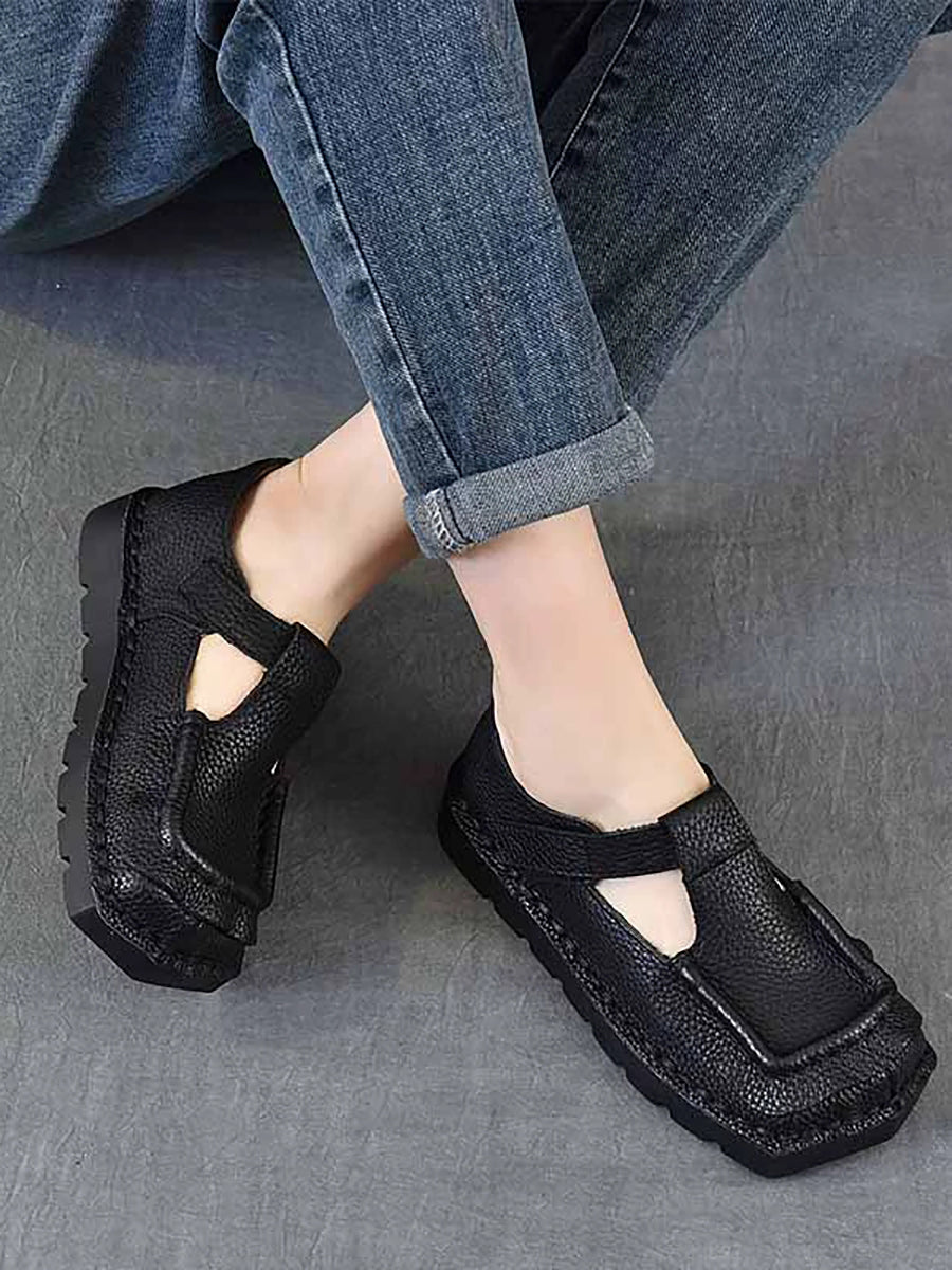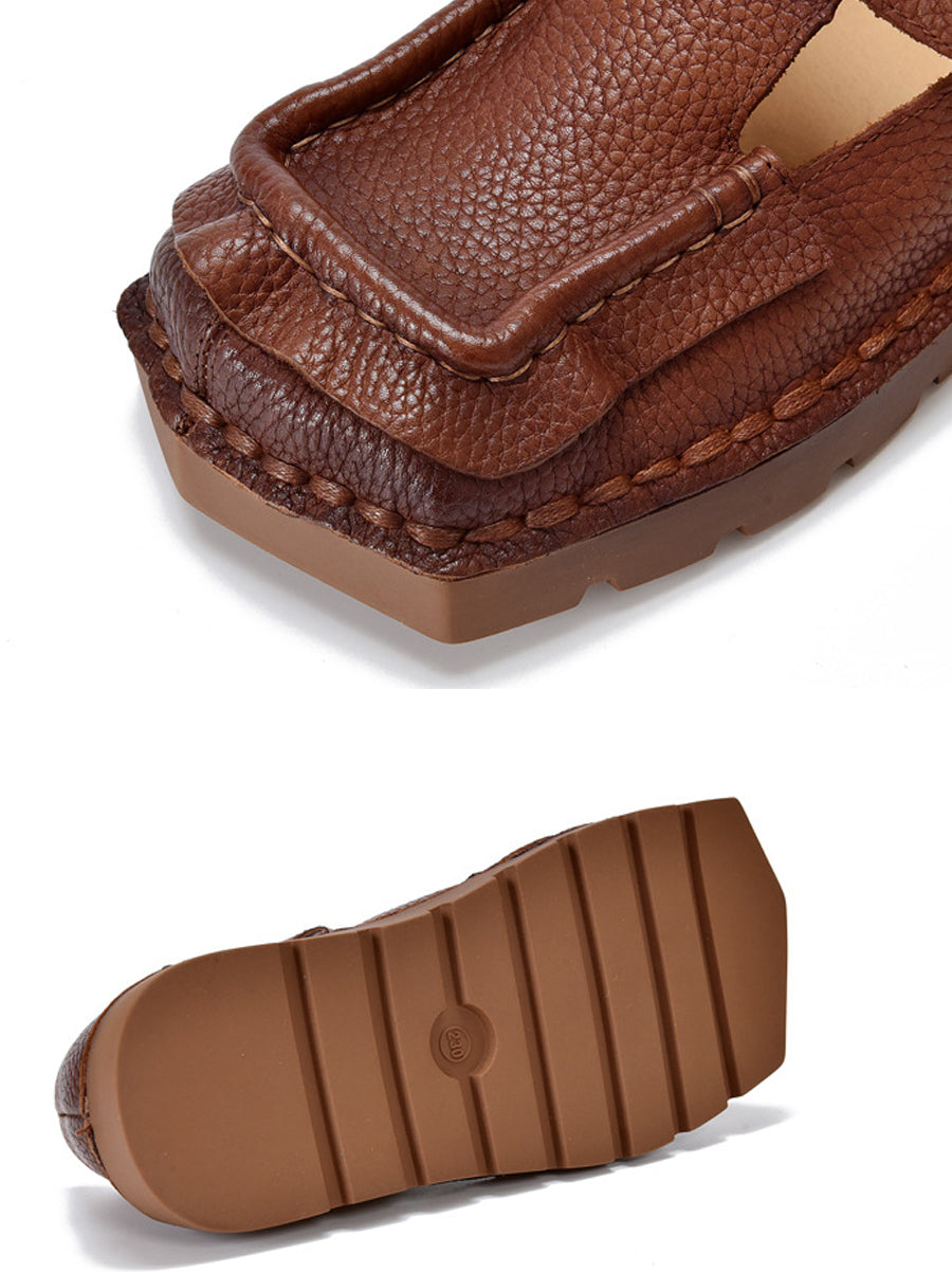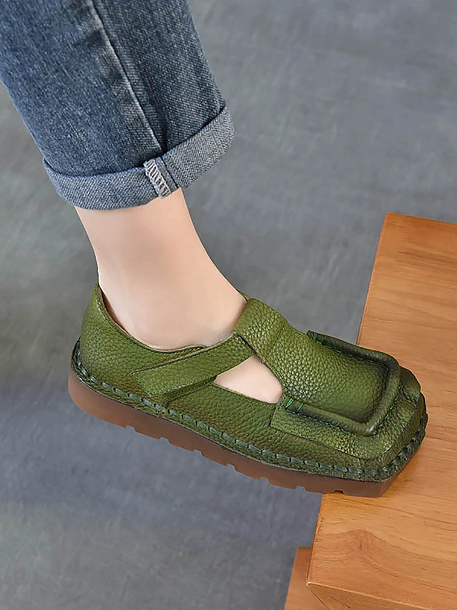 Women Vintage Genuine Leather Square-Toe Shoes