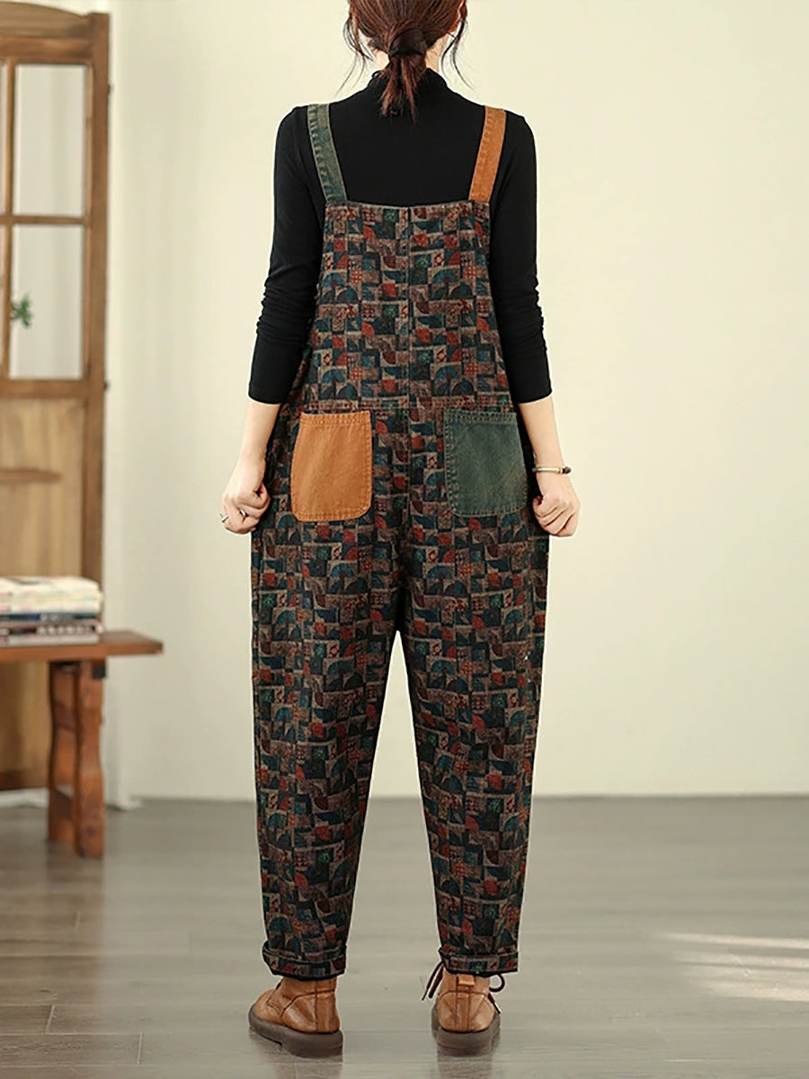 Women Vintage Patchwork Cotton Loose Denim Jumpsuits