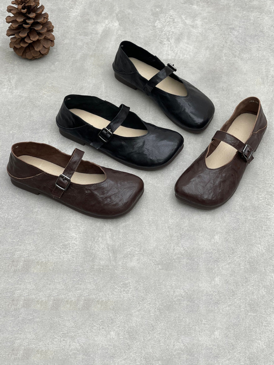 Women Vintage Soft Genuine Leather Low Heel Shoes