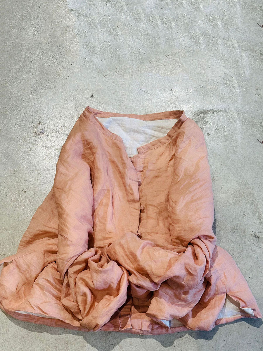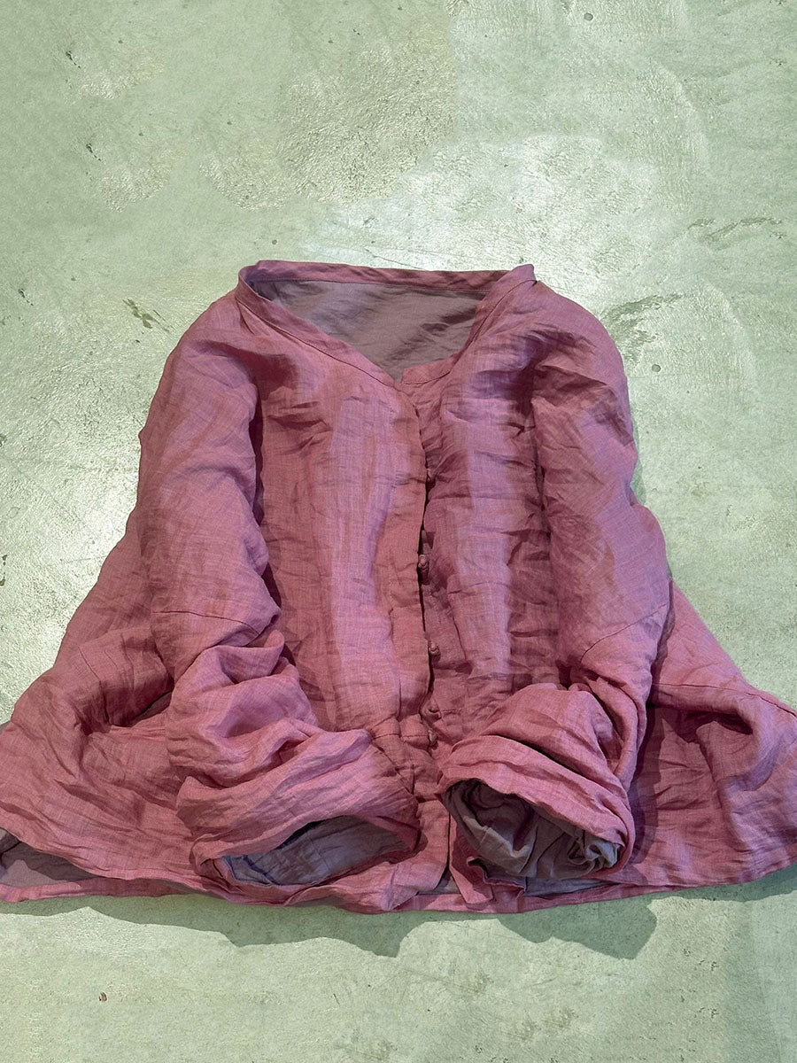 Constructed with high-quality ramie material, this timeless shirt boasts a solid design and a stand collar, accentuating an overall retro style. The full raglan sleeves make it a must-have for the Spring and Autumn seasons.
