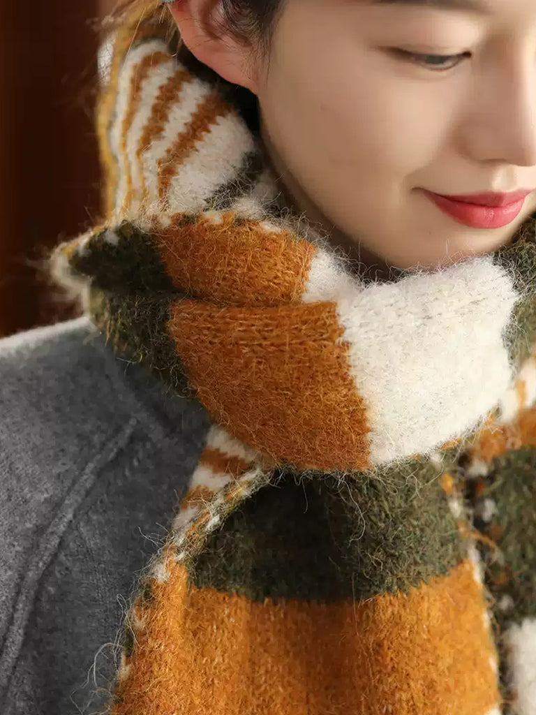 Women Vintage Winter Colorblock Warm Scarf