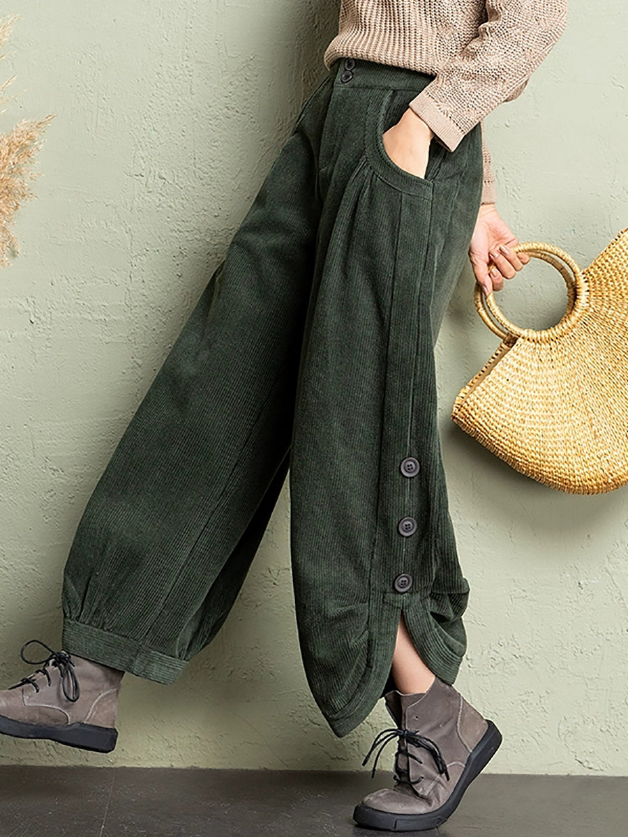 Plus Size Women Winter Casual Pure Color Corduroy Bloomers