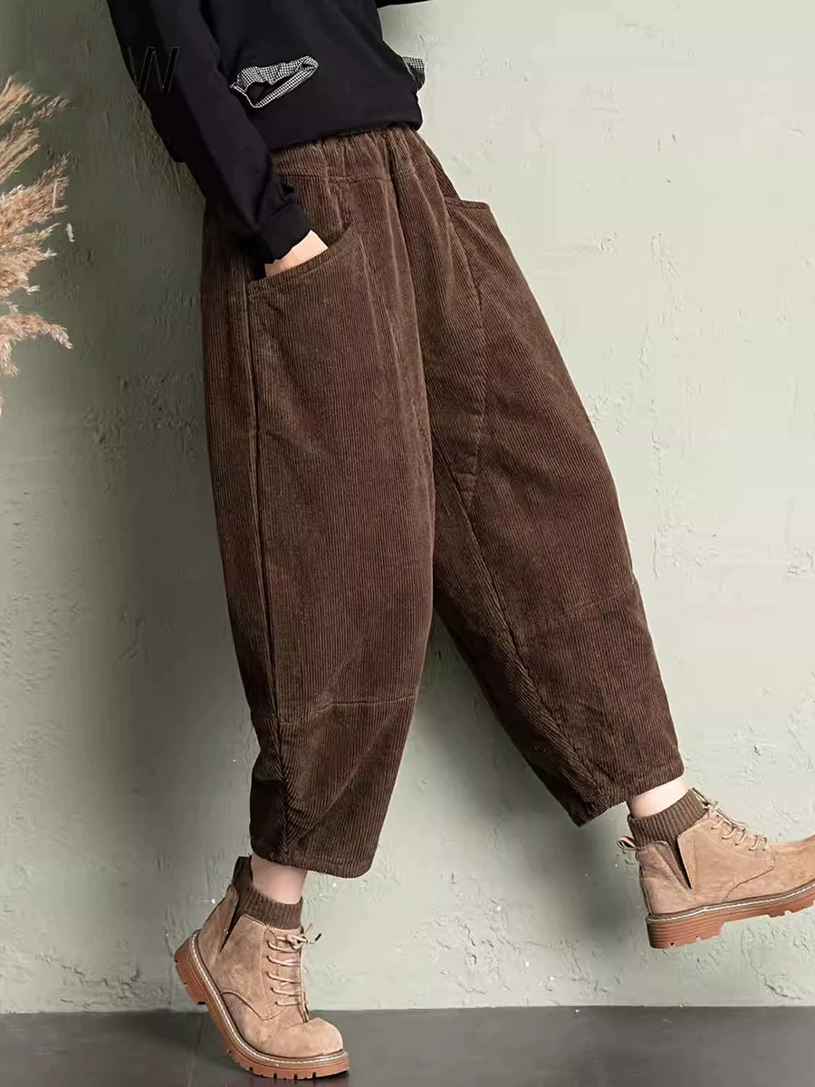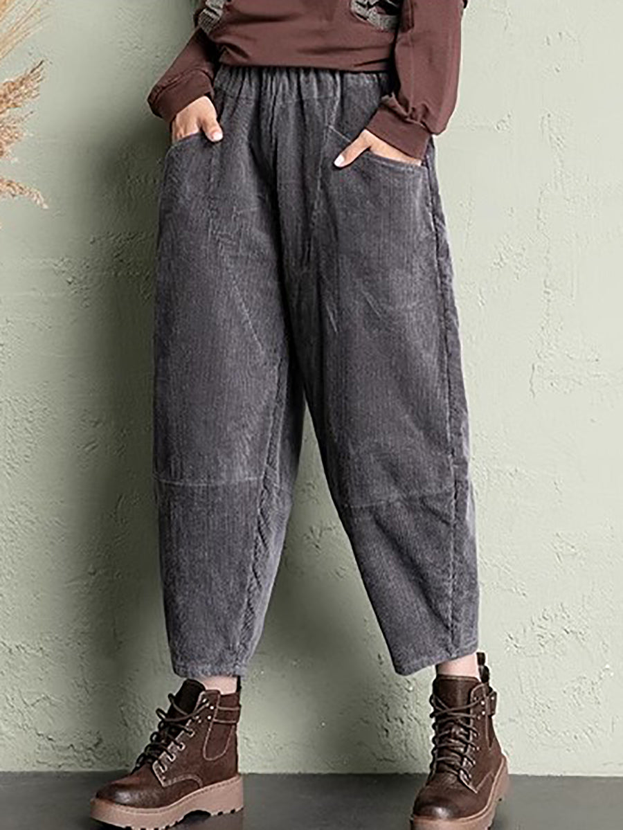 Women Winter Retro Pure Color Corduroy Harem Pants