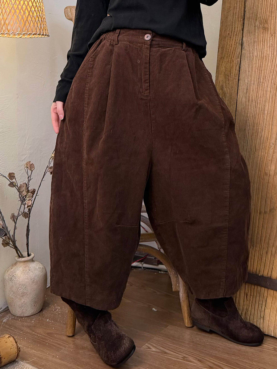 Women Winter Retro Pure Color Corduroy Harem Pants