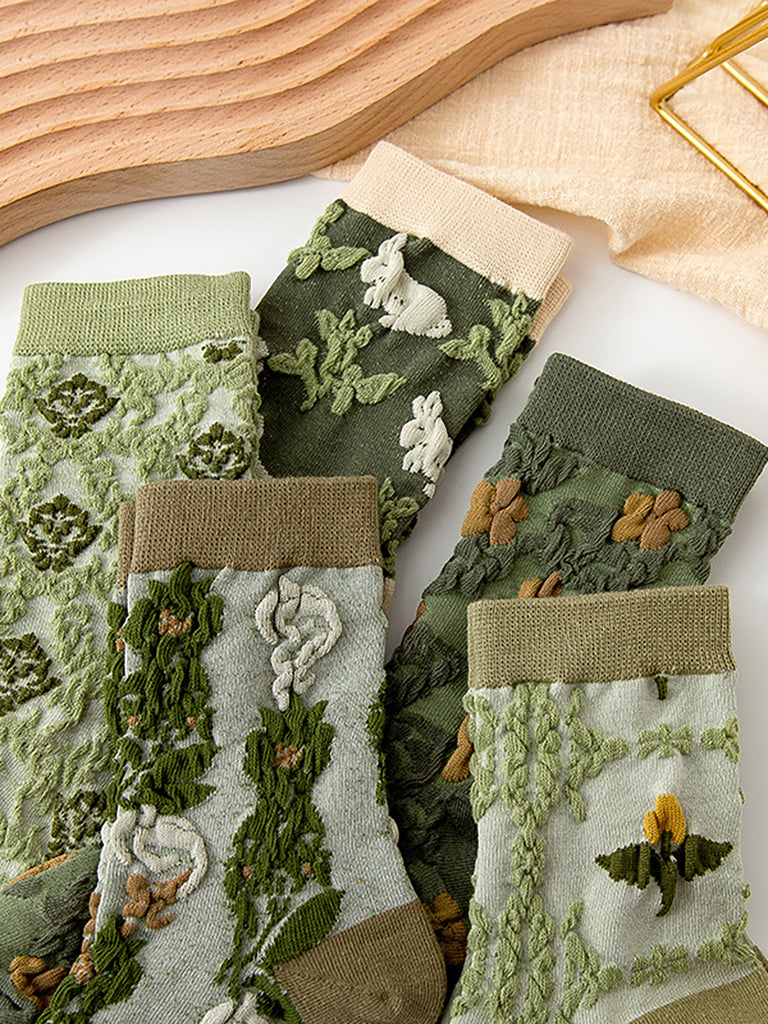 5 pares meninas meias de estilo de quadra floral vintage
