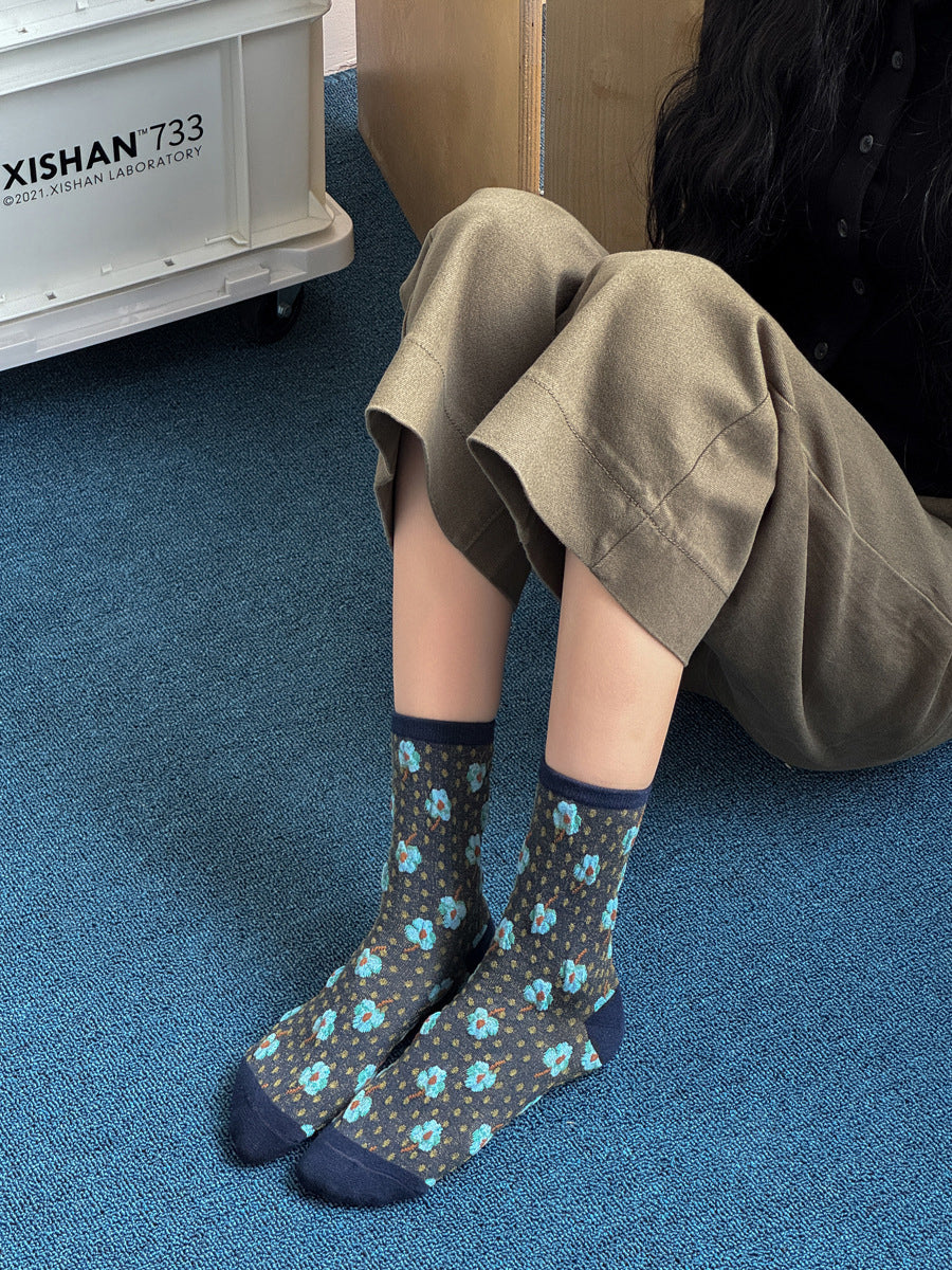5 pares de meias femininas com estampa floral jacquard