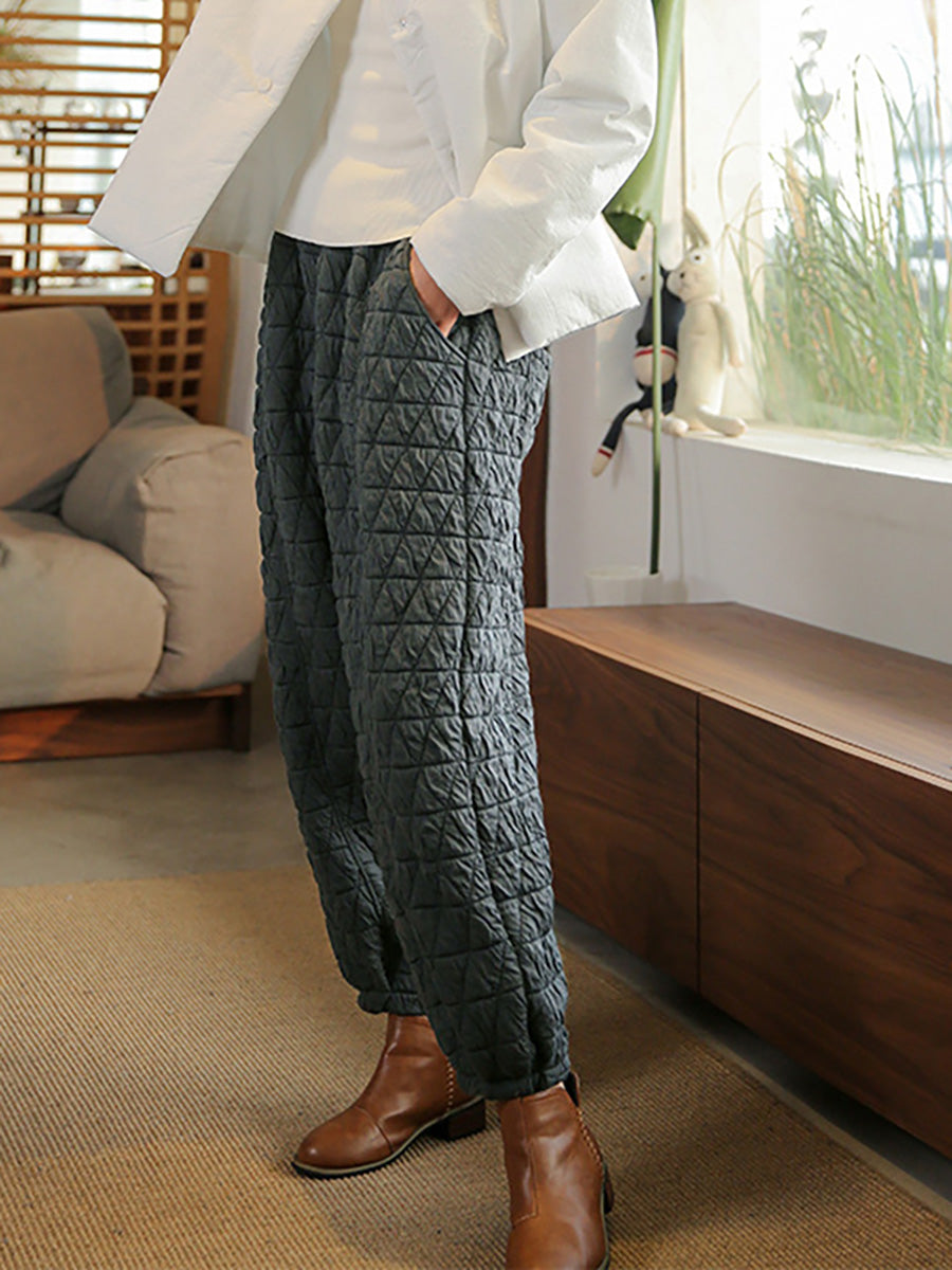 Estas calças quentes de cintura elástica com bolso de cor sólida são perfeitas para o outono e inverno! Eles são feitos de uma mistura de algodão que os torna respiráveis e confortáveis de usar. Eles apresentam um cós elástico para um ajuste confortável e dois bolsos para guardar seus itens essenciais. Estas calças estão disponíveis em uma variedade de cores para que você encontre o ajuste perfeito para o seu guarda-roupa.