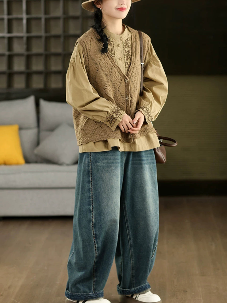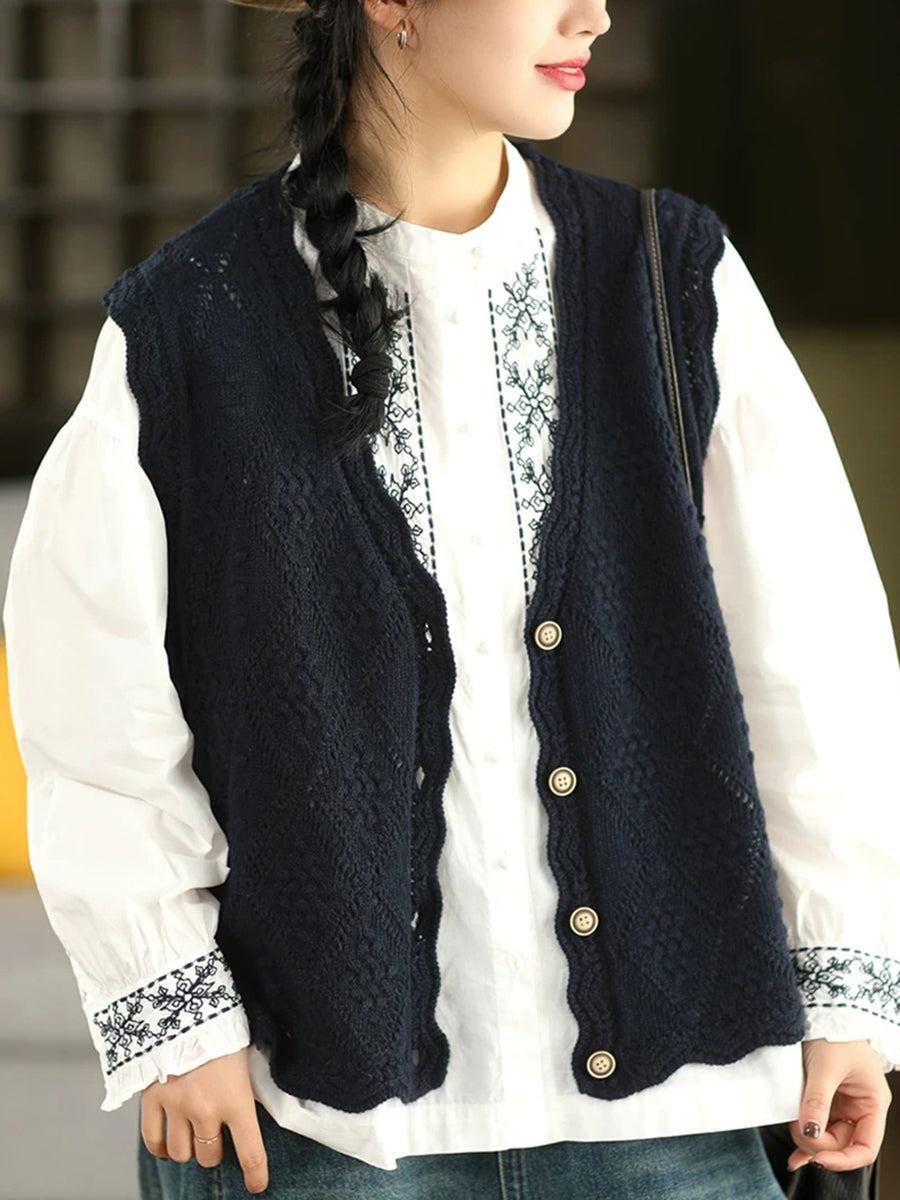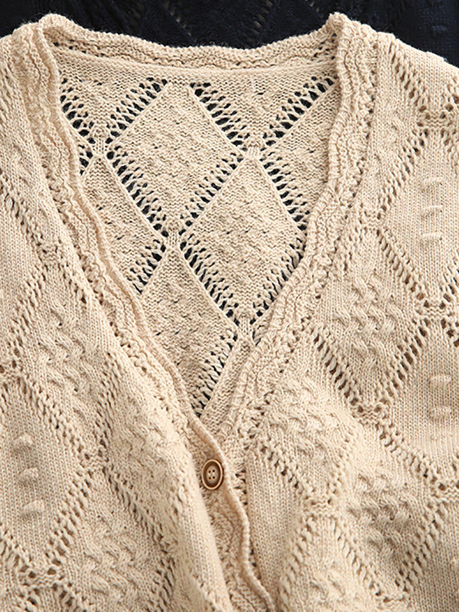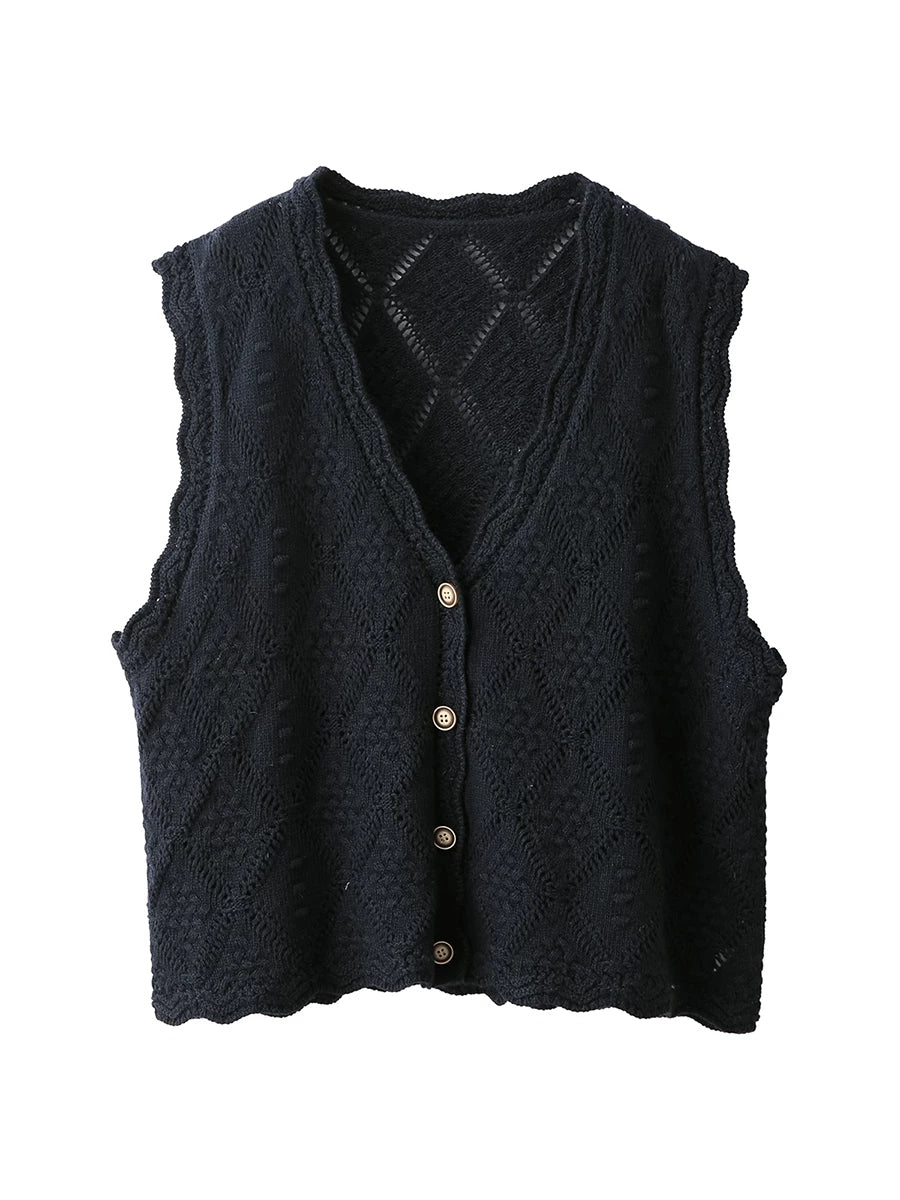 Colete feminino de tricô com decote em V e estampa de losangos, estilo artístico, para a primavera.