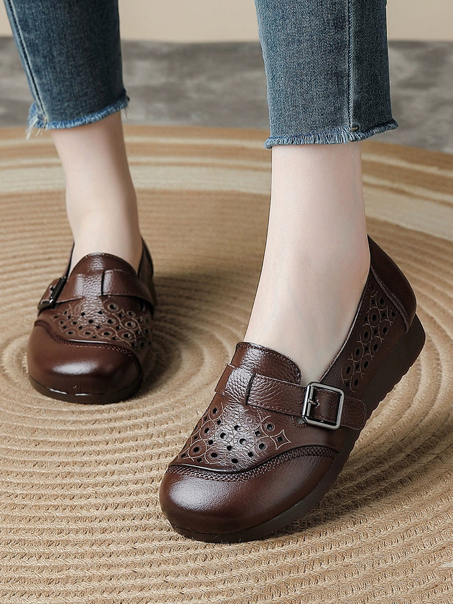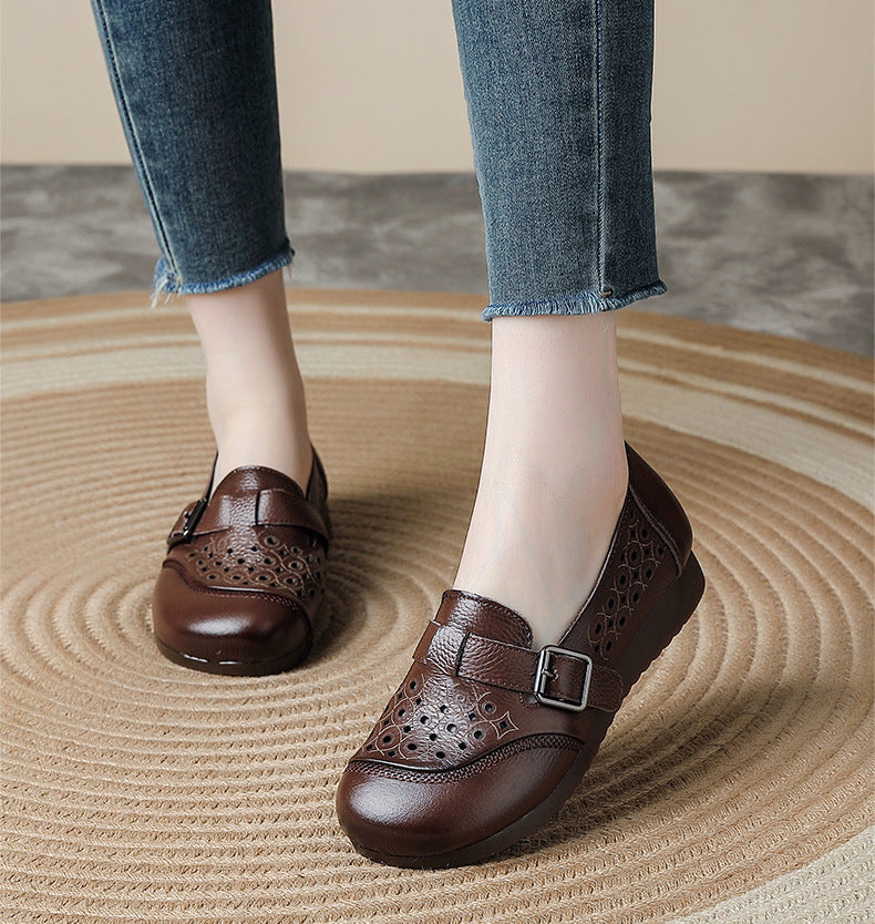 Sapatos femininos de verão em couro legítimo com salto baixo