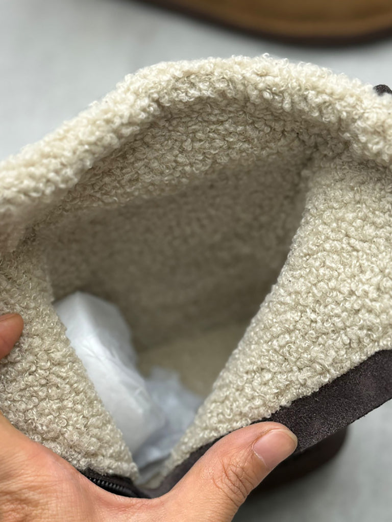 Botas femininas vintage de couro com forro de lã
