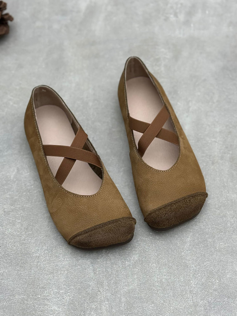 Sapatos femininos vintage de couro macio com salto baixo