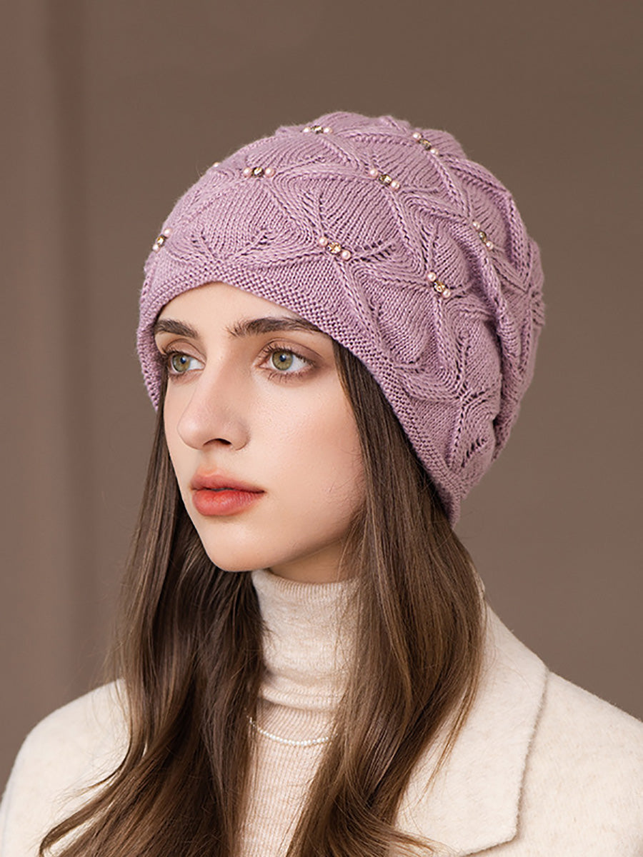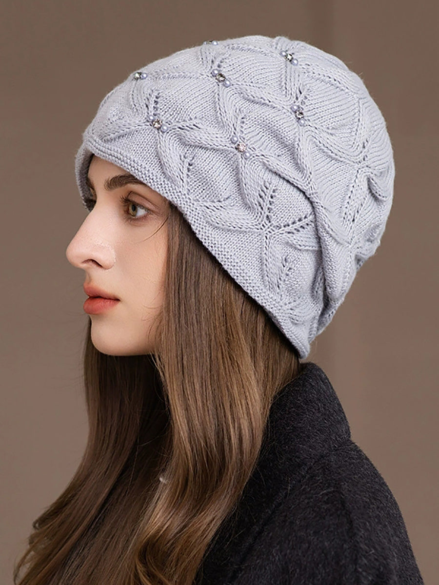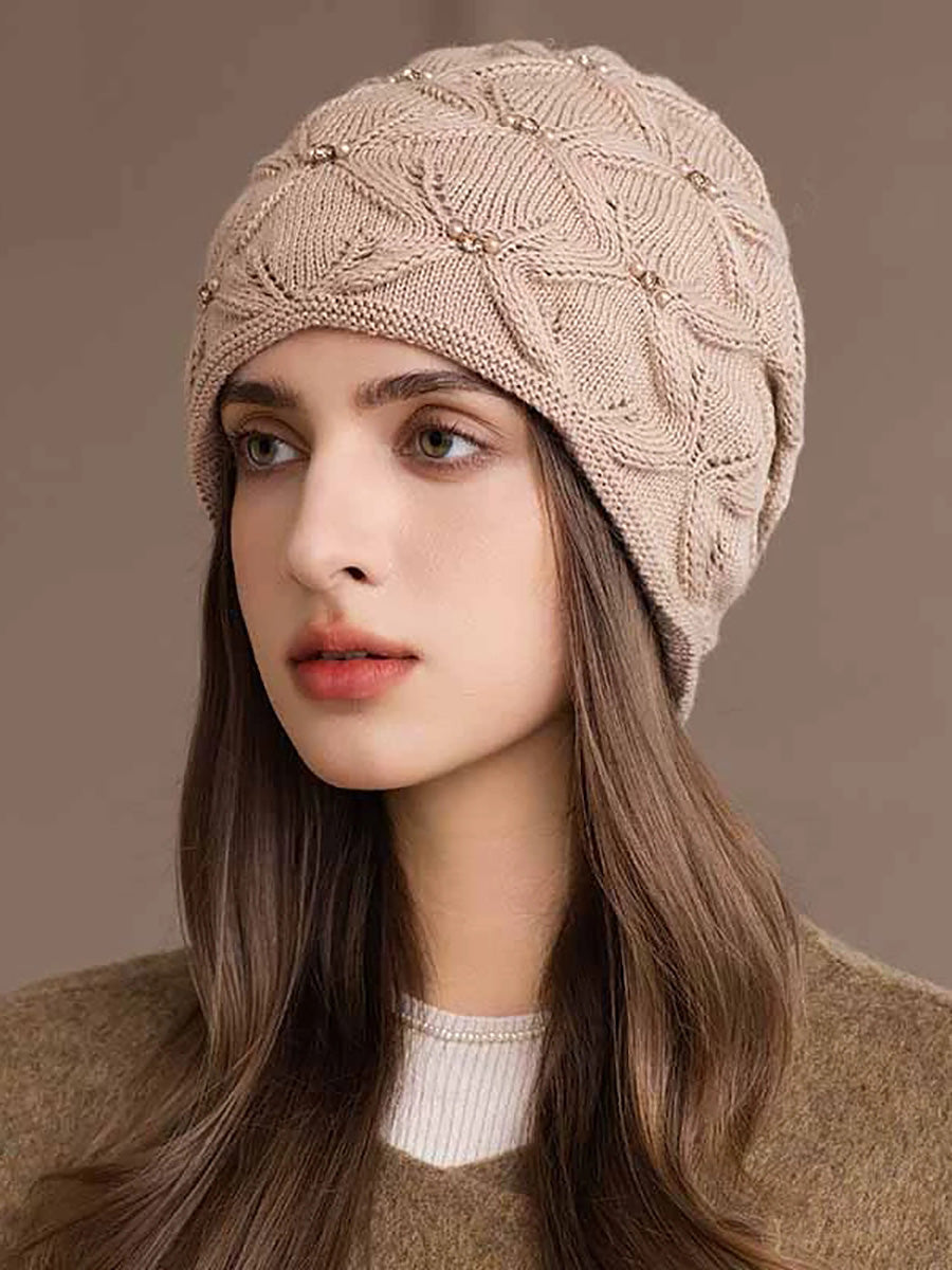 Gorro feminino de inverno em tricô, estilo artístico, cor lisa.