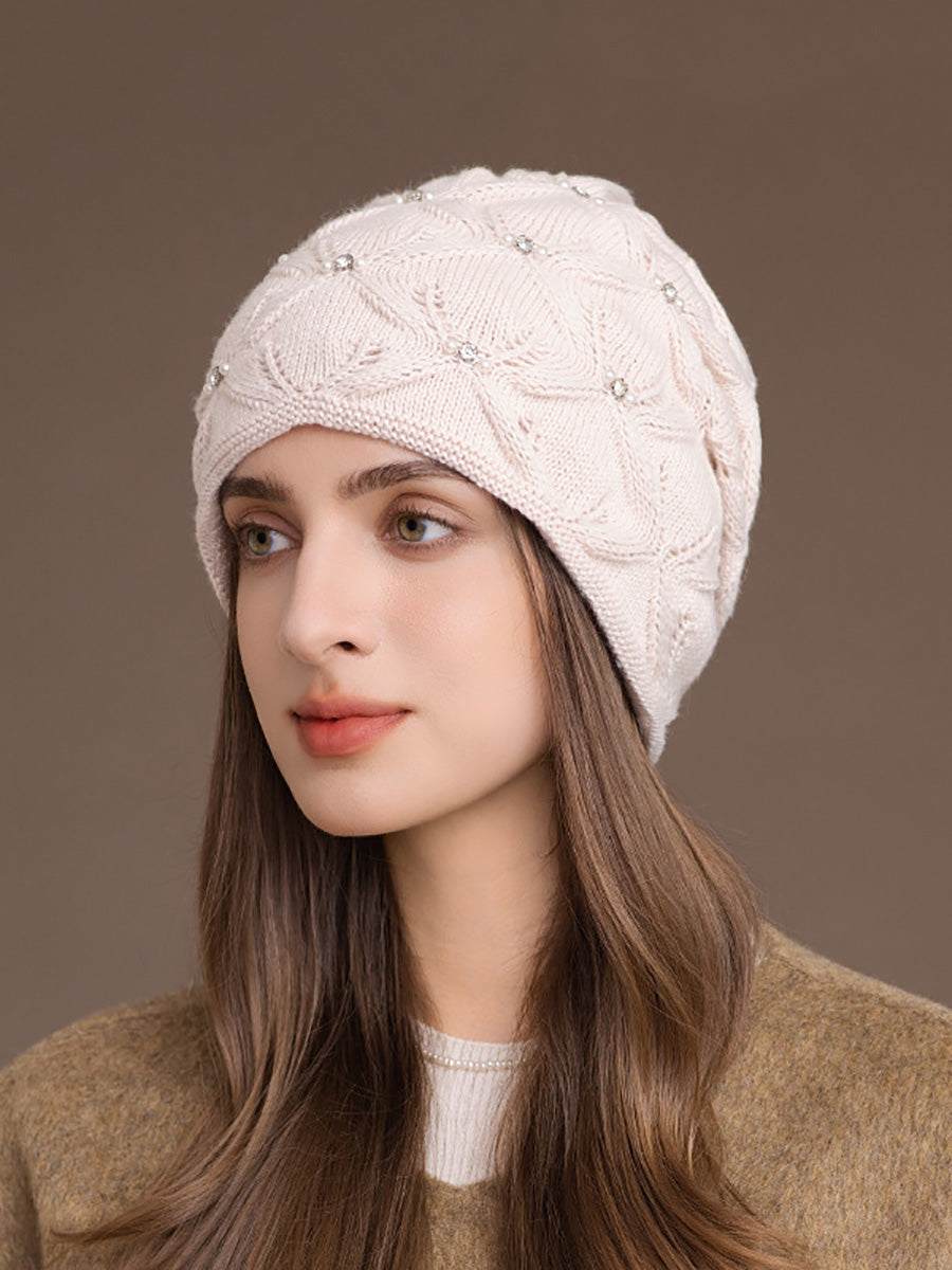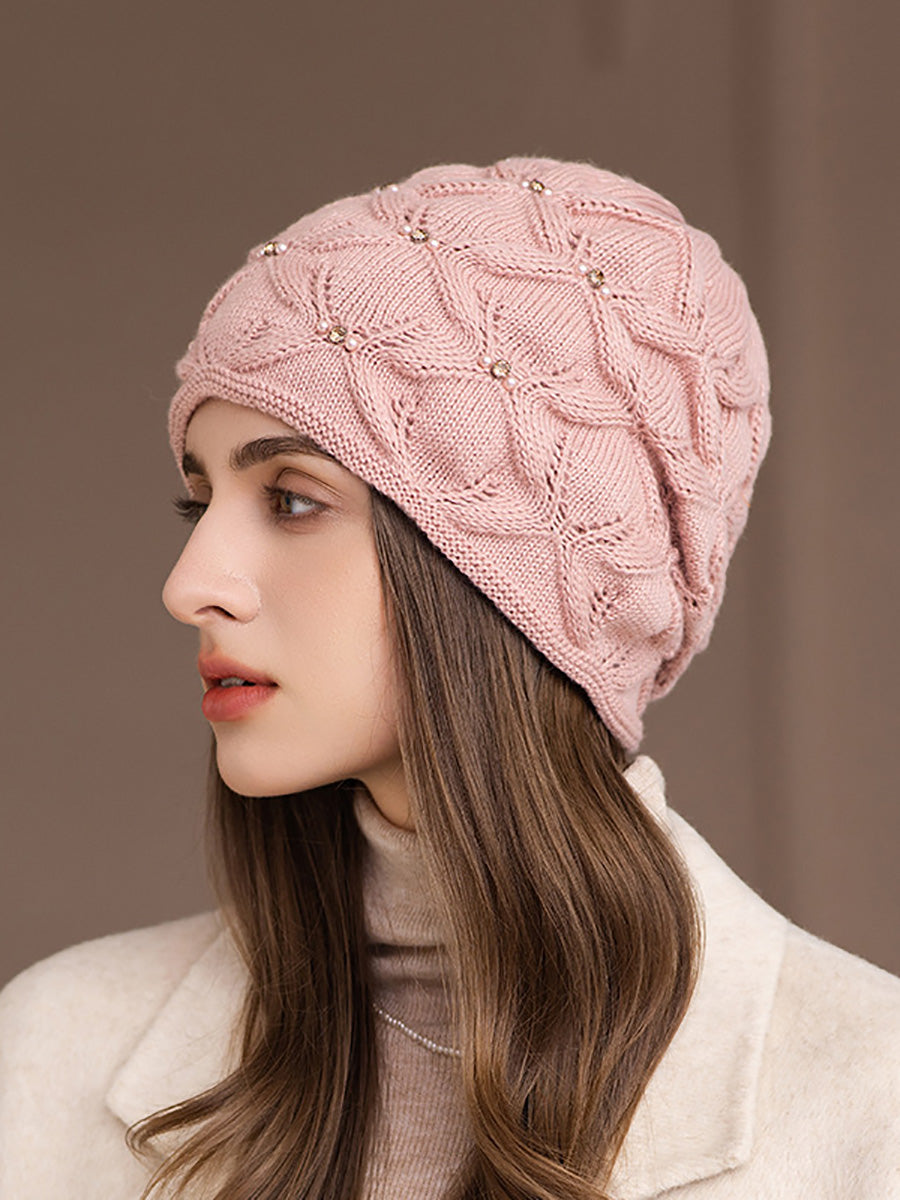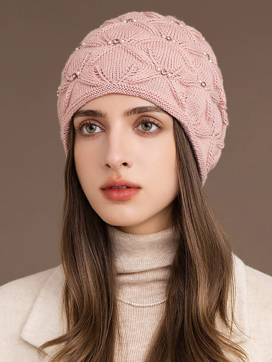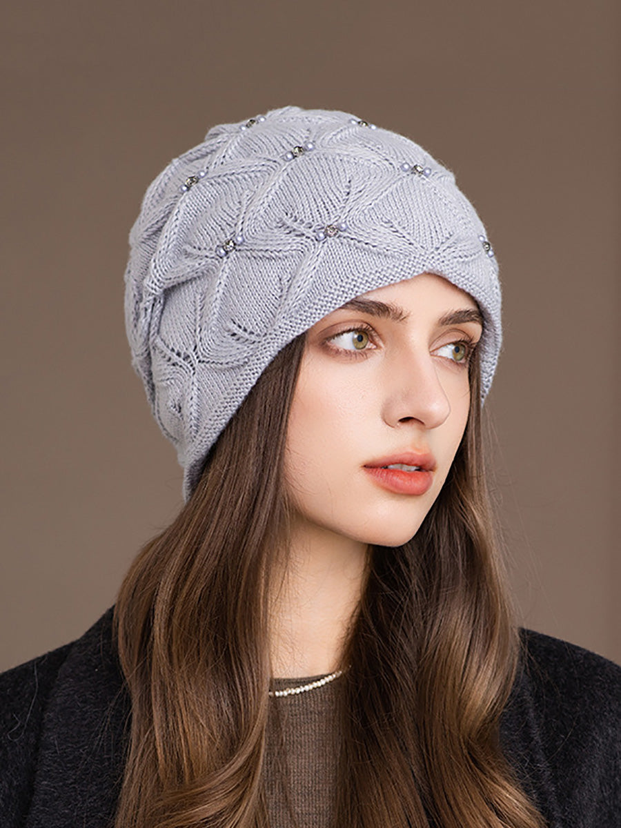 Gorro feminino de inverno em tricô, estilo artístico, cor lisa.