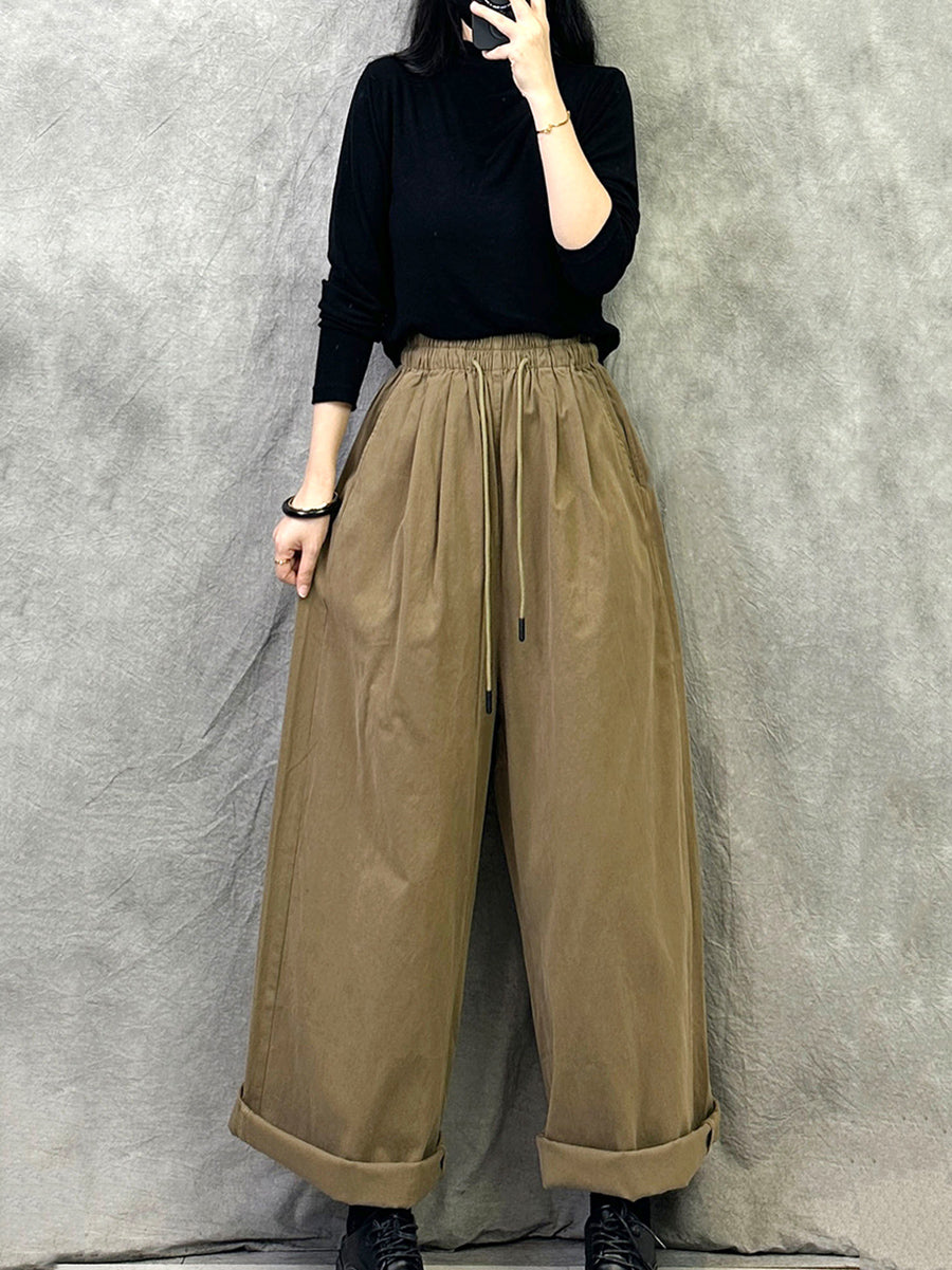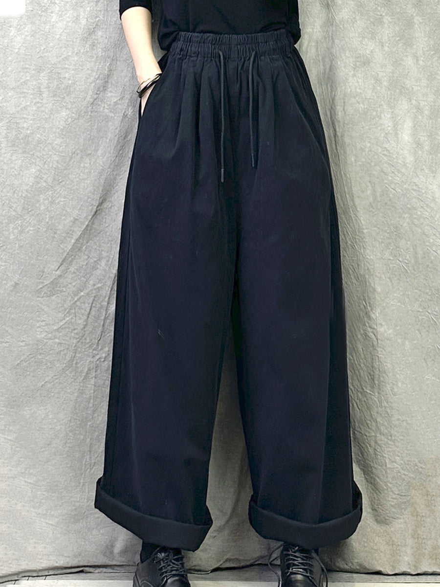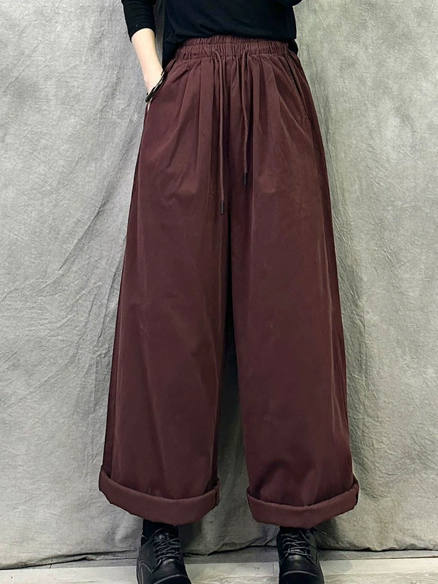Calça feminina de inverno retrô de cor lisa com pernas largas