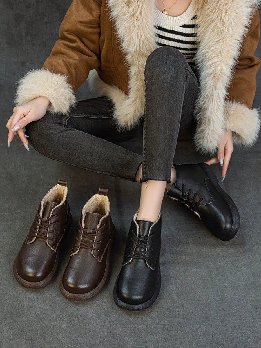 Ghete de iarnă pentru femei din piele naturală, căptușite cu fleece