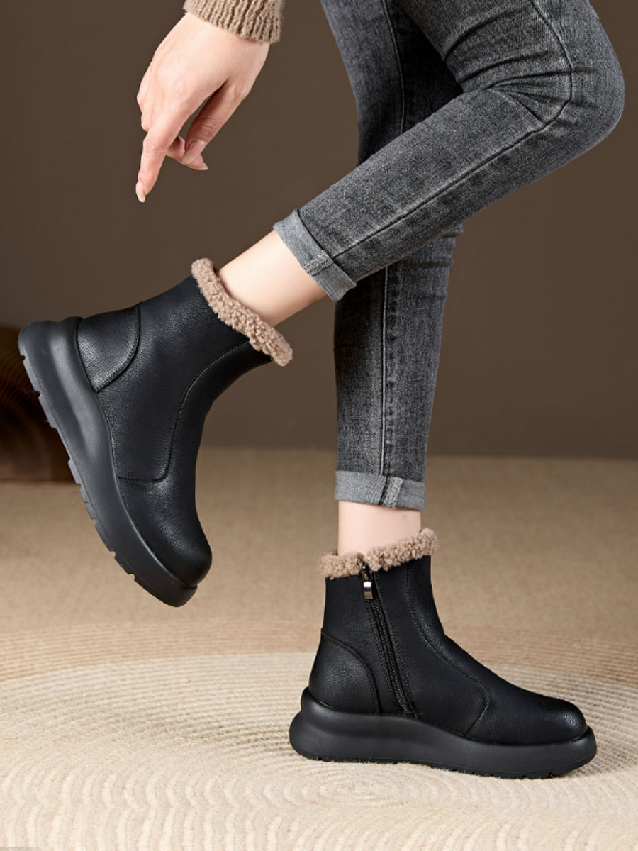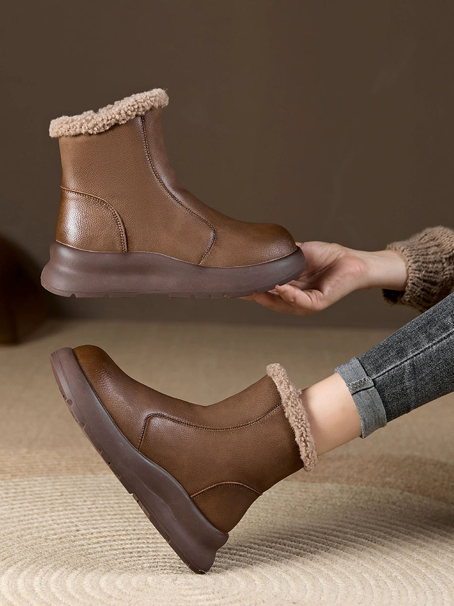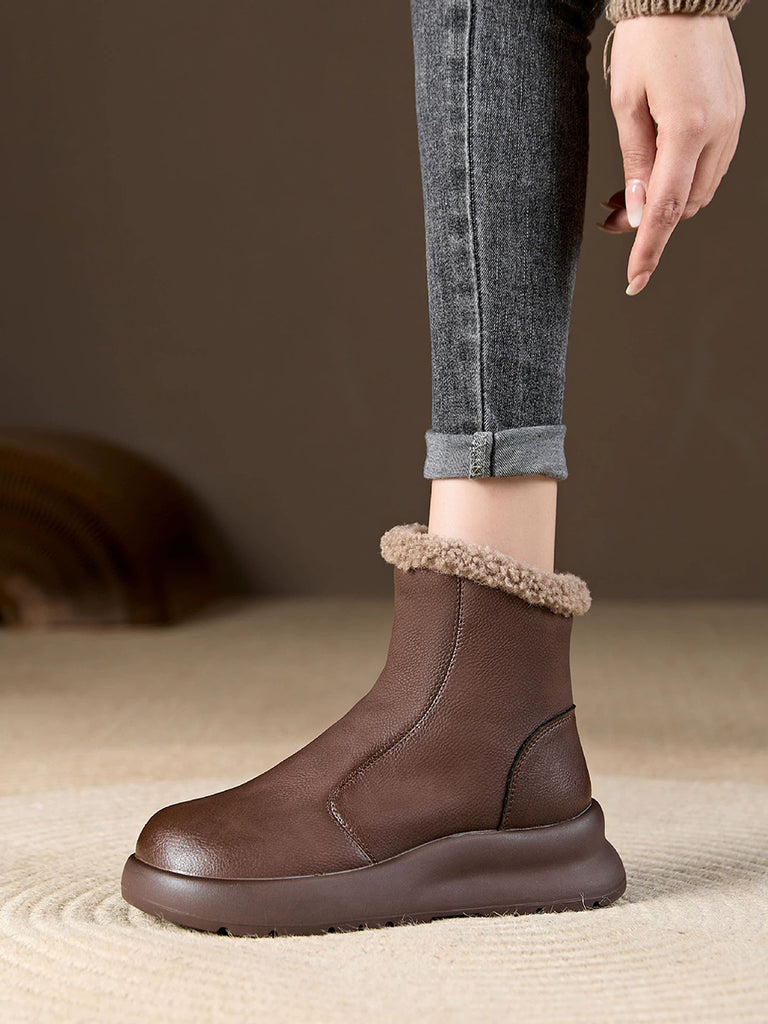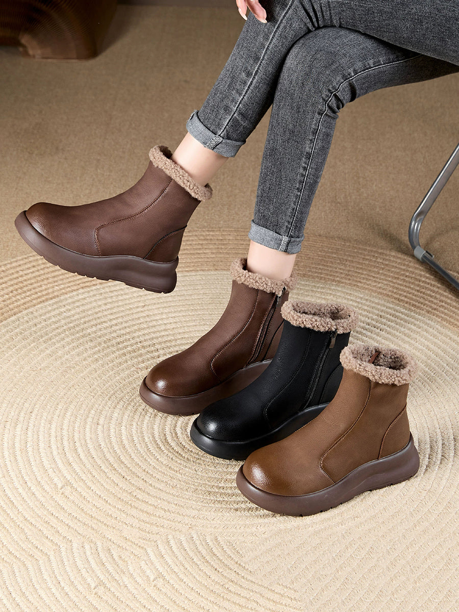 Ghete de iarnă pentru femei, casual, din piele moale, cu căptușeală din fleece