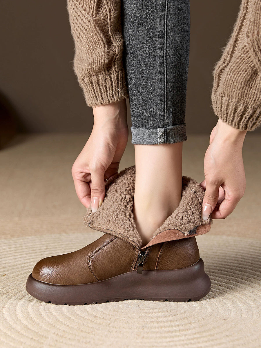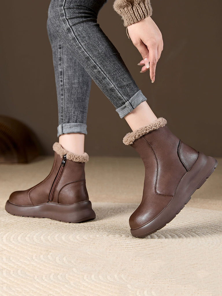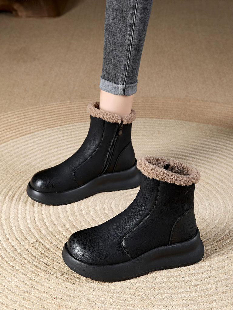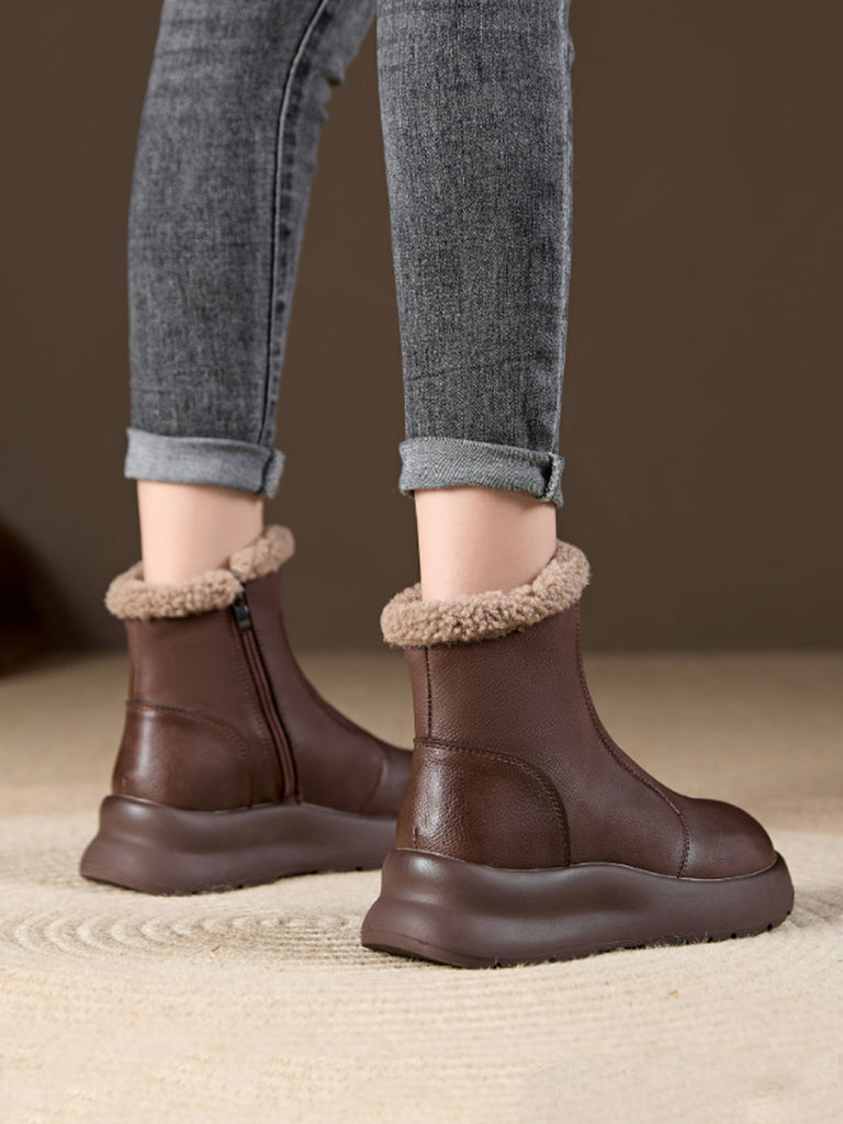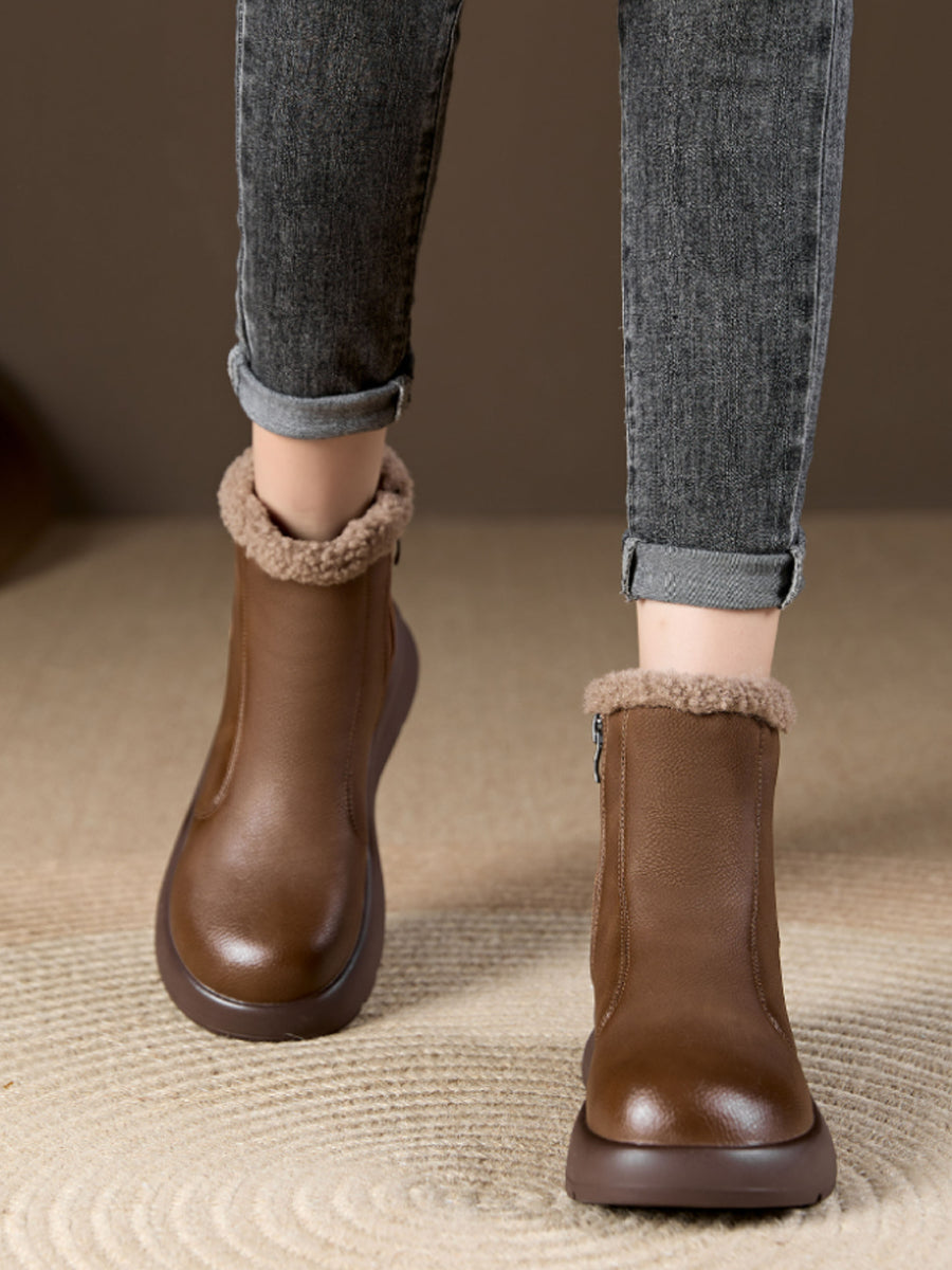 Ghete de iarnă pentru femei, casual, din piele moale, cu căptușeală din fleece