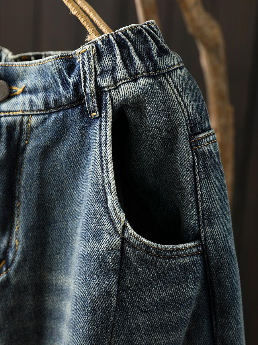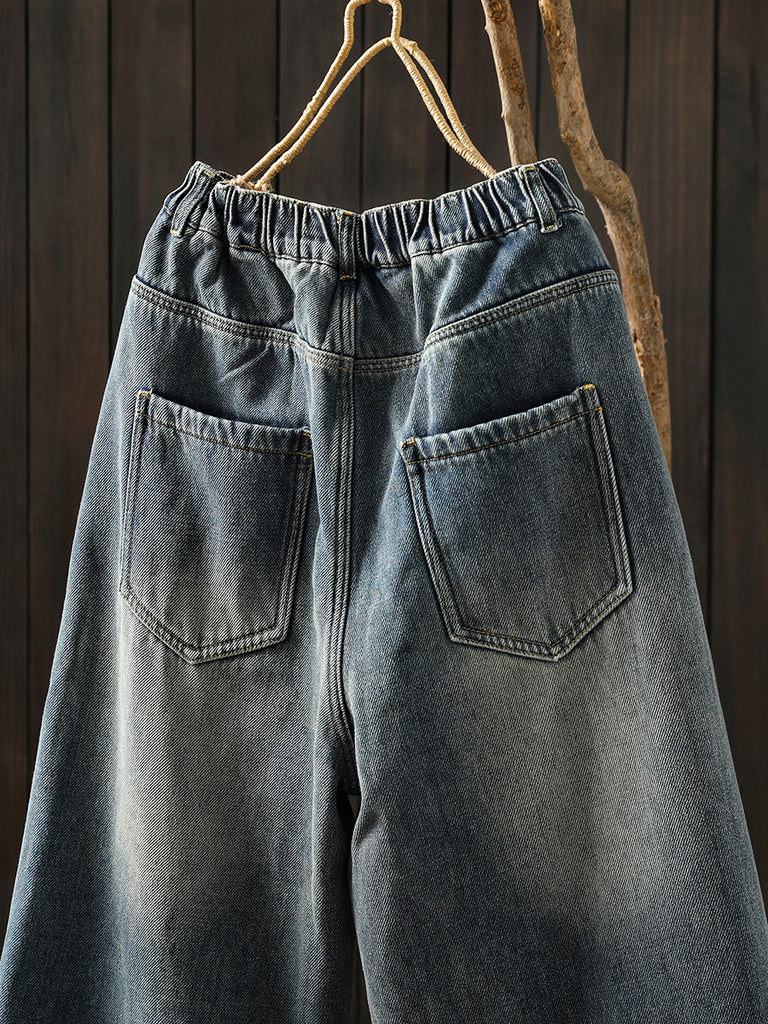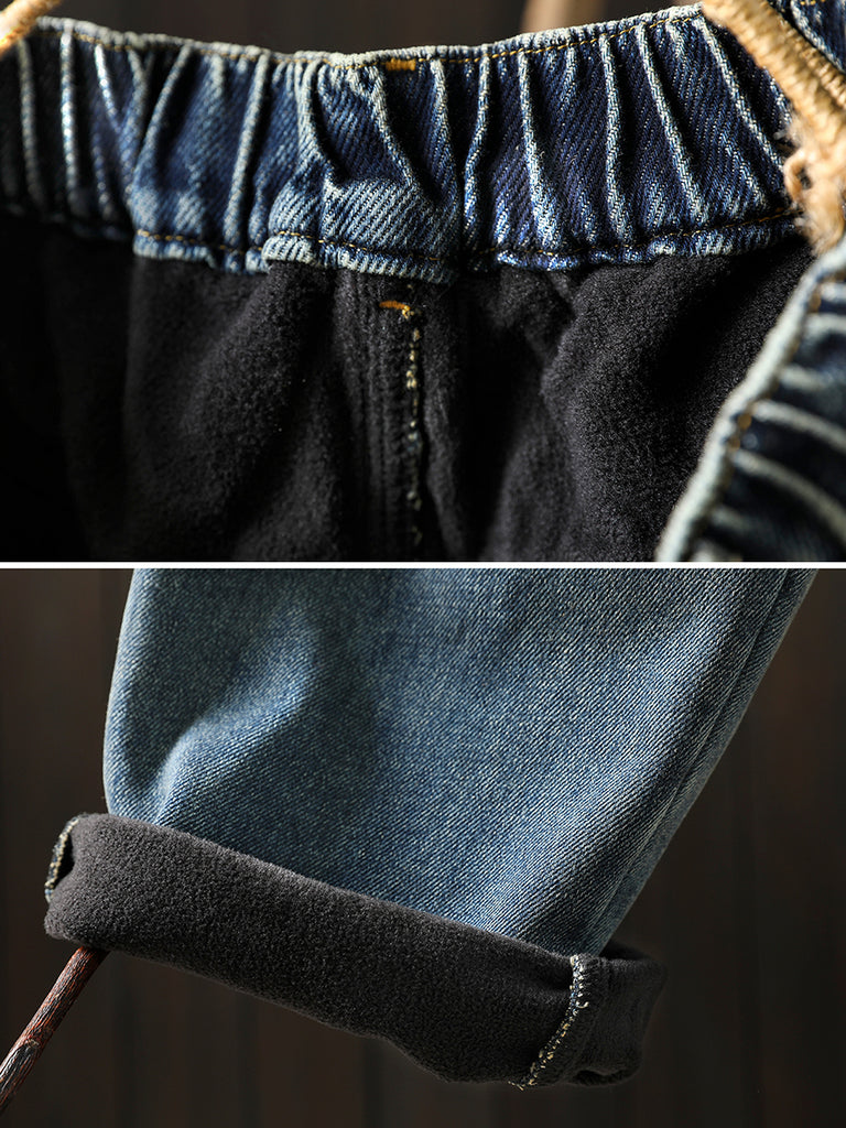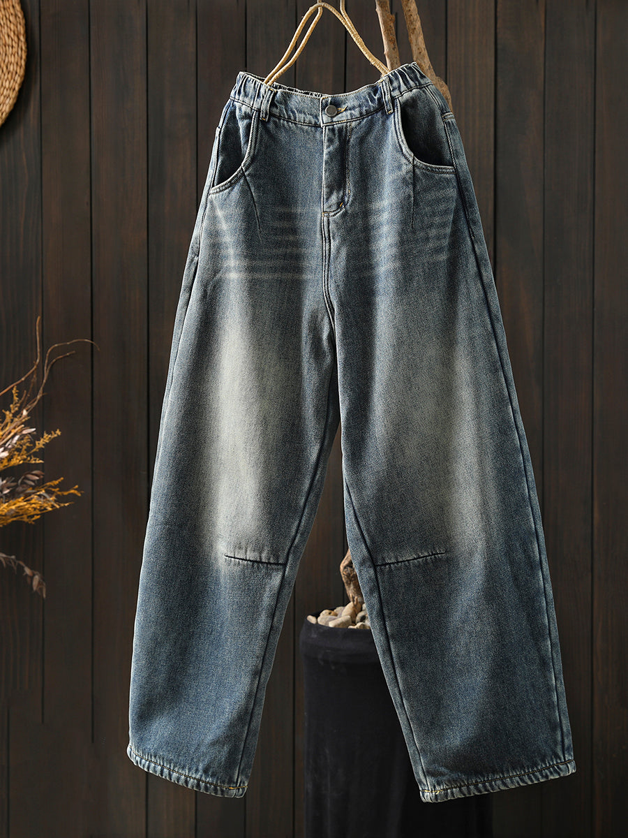 Pantaloni largi cu căptușeală din fleece, de culoare pură, retro de iarnă pentru femei