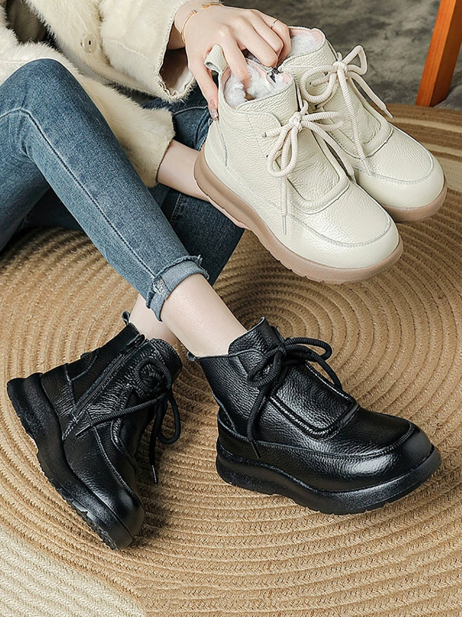 Ghete de iarnă pentru femei din piele naturală, căptușite cu fleece