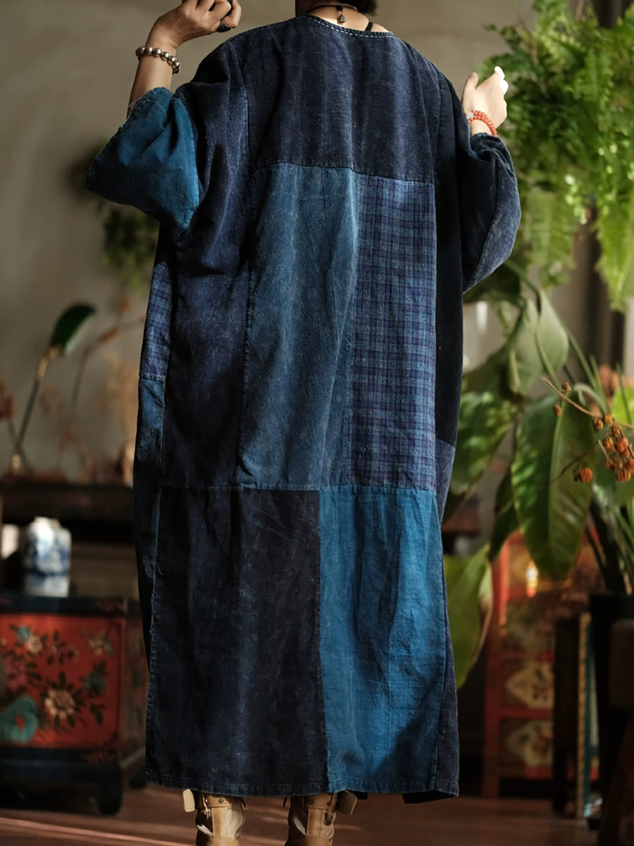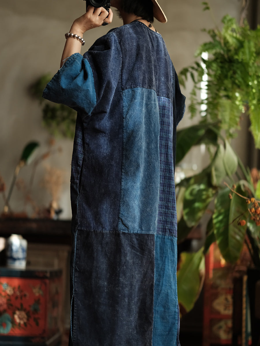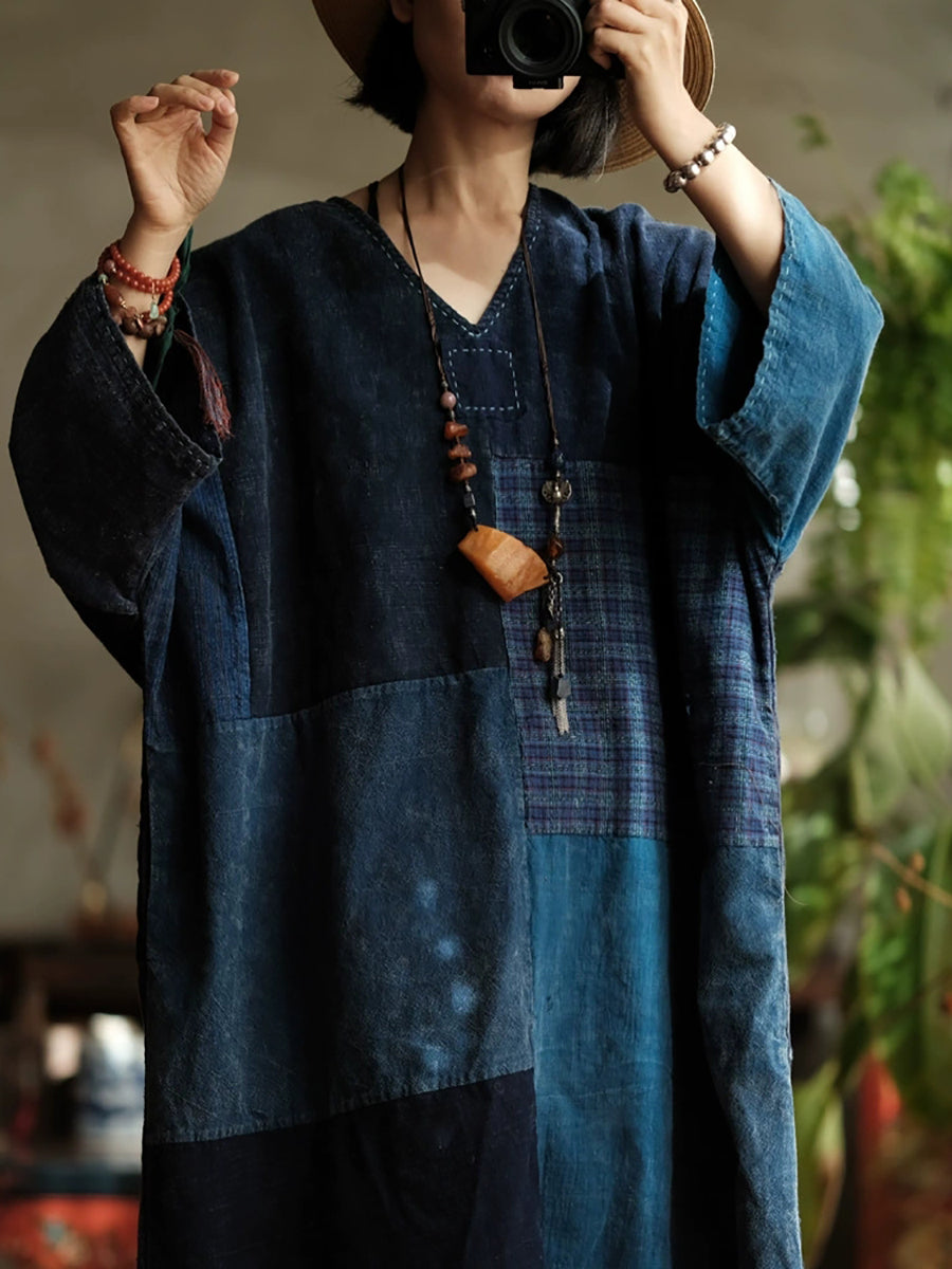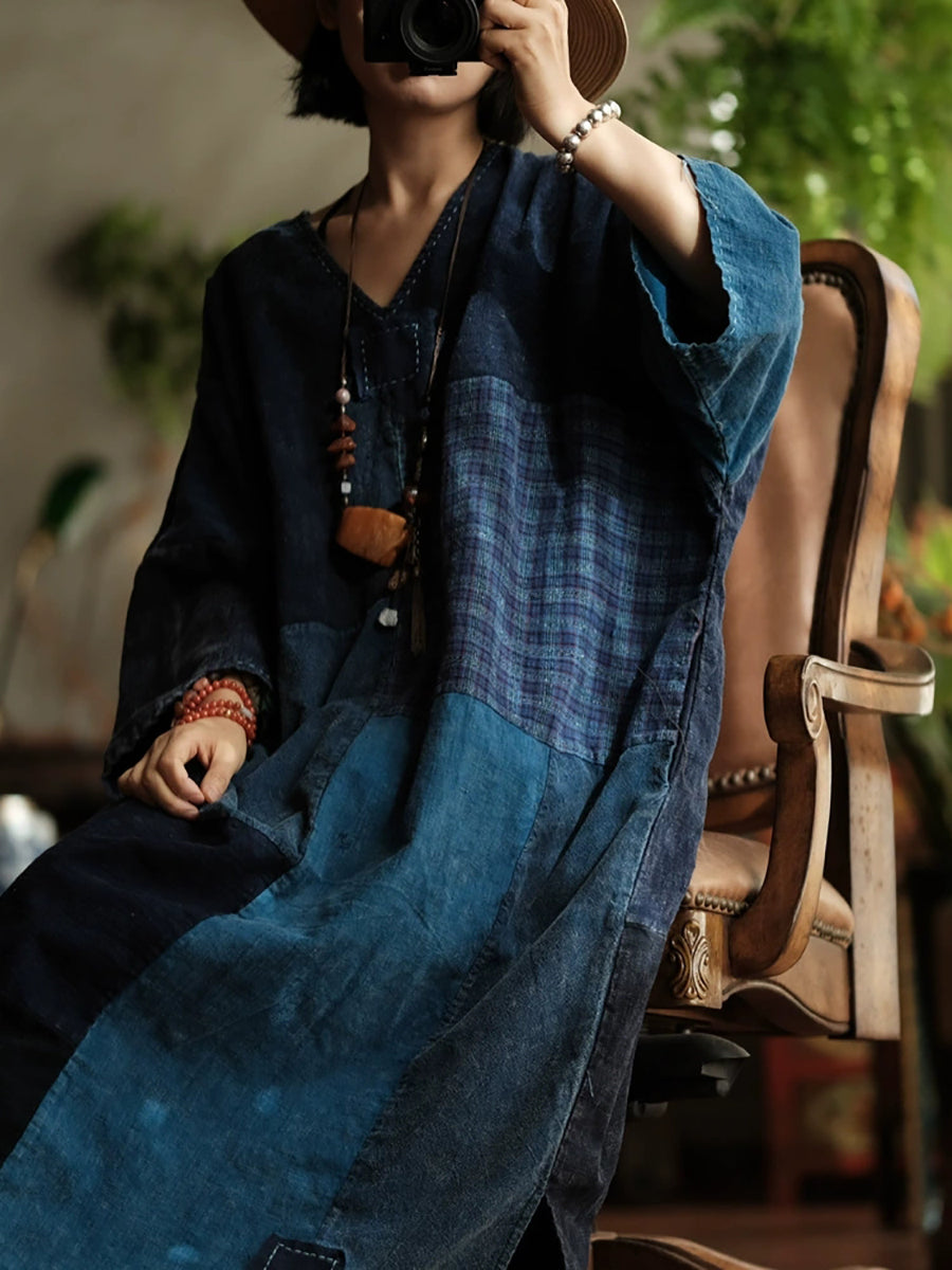 Rochie de primăvară retro cu imprimeu petic, cu decolteu în V, din bumbac