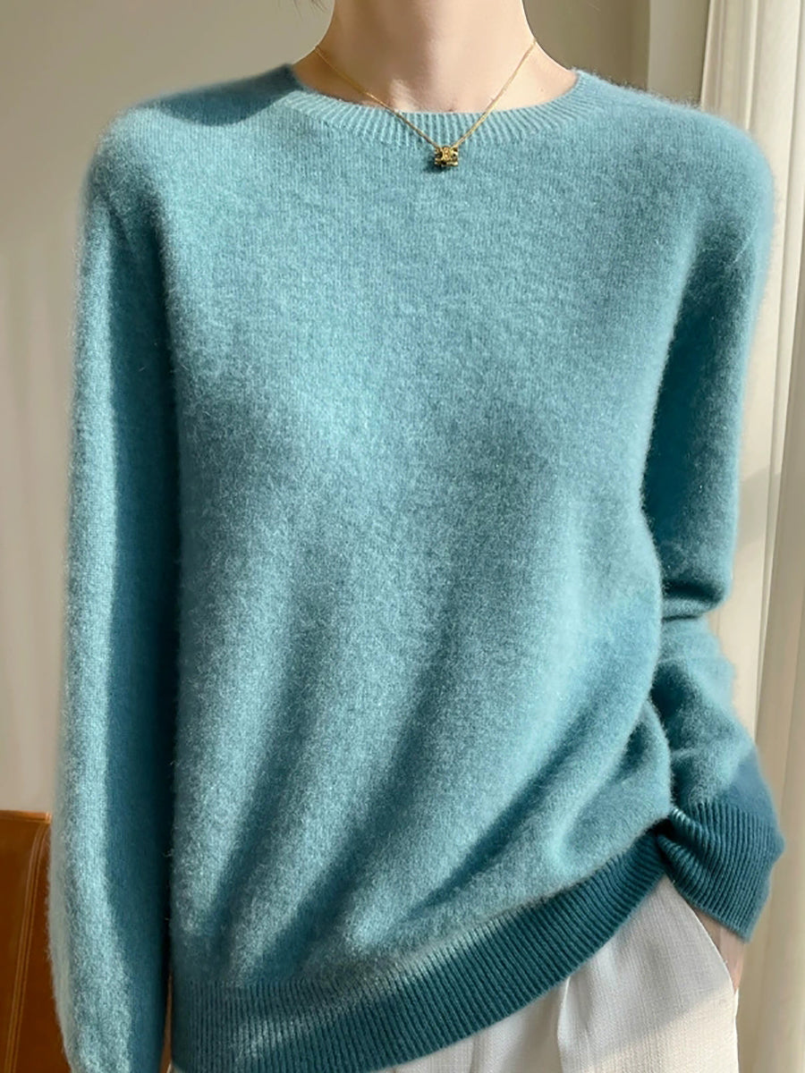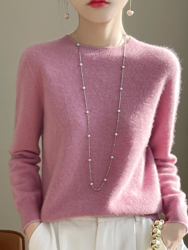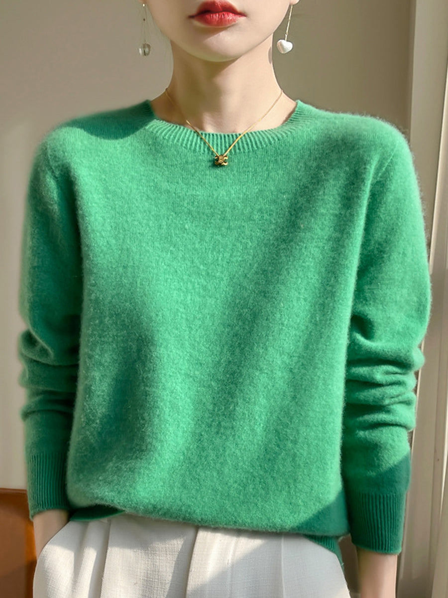 Pulover cu guler O în culoarea pură pentru femei, casual, de toamnă