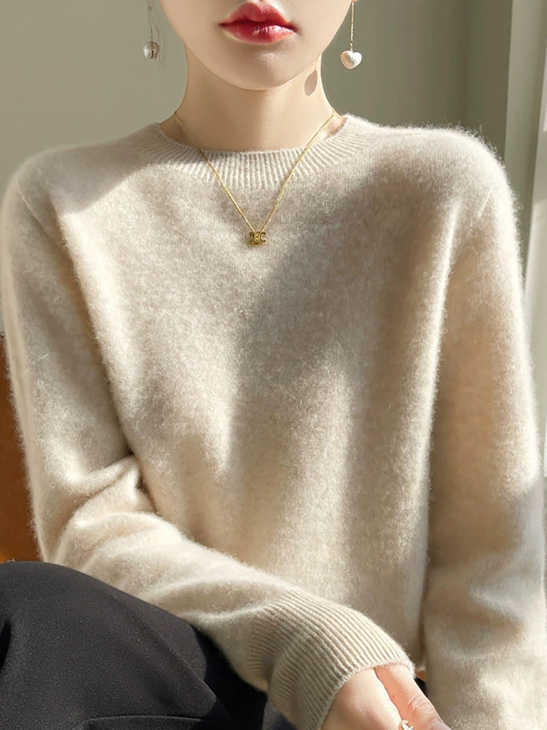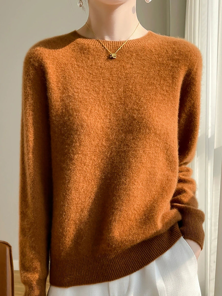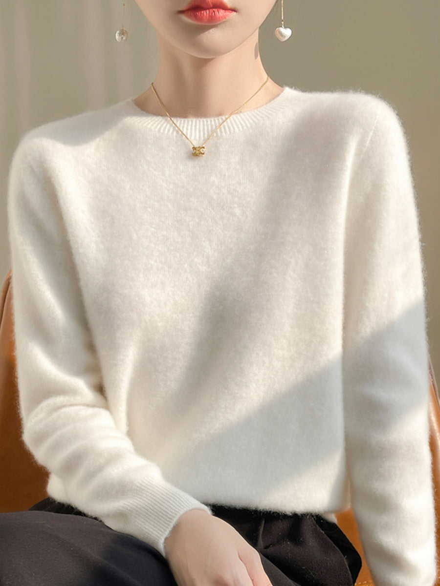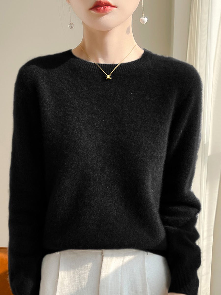 Pulover cu guler O în culoarea pură pentru femei, casual, de toamnă