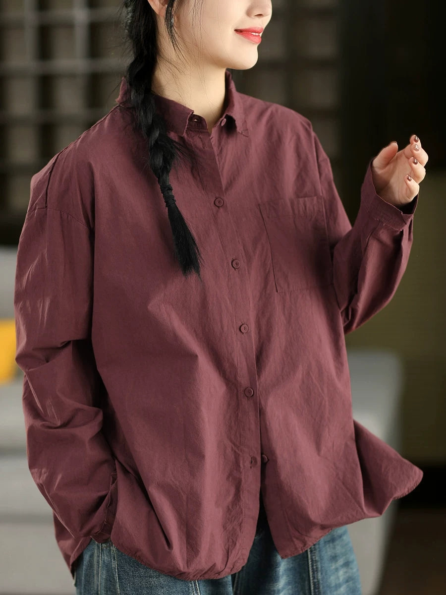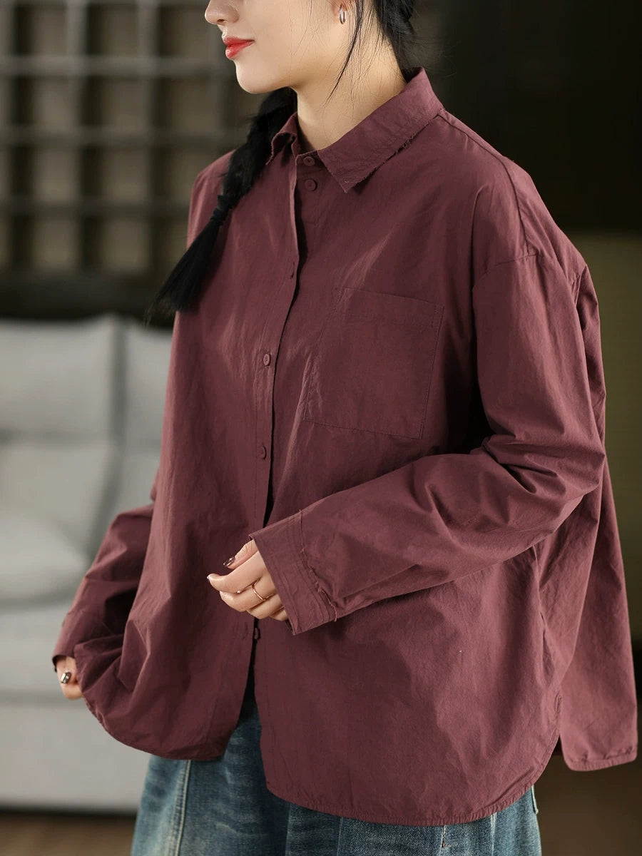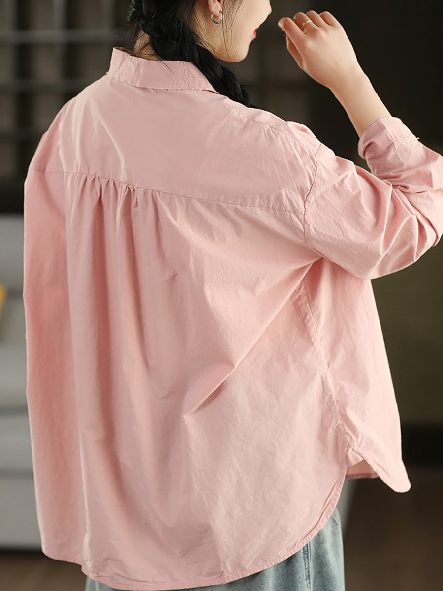 Cămașă de primăvară artistică, culoare pură, 100% bumbac