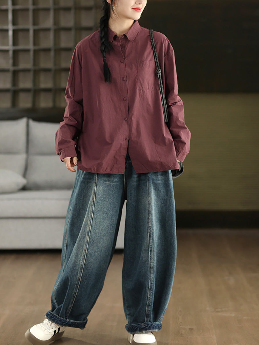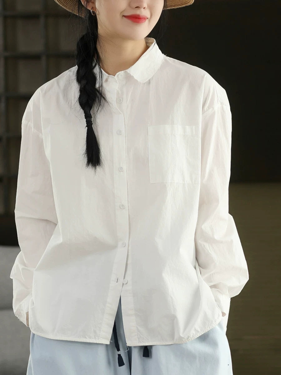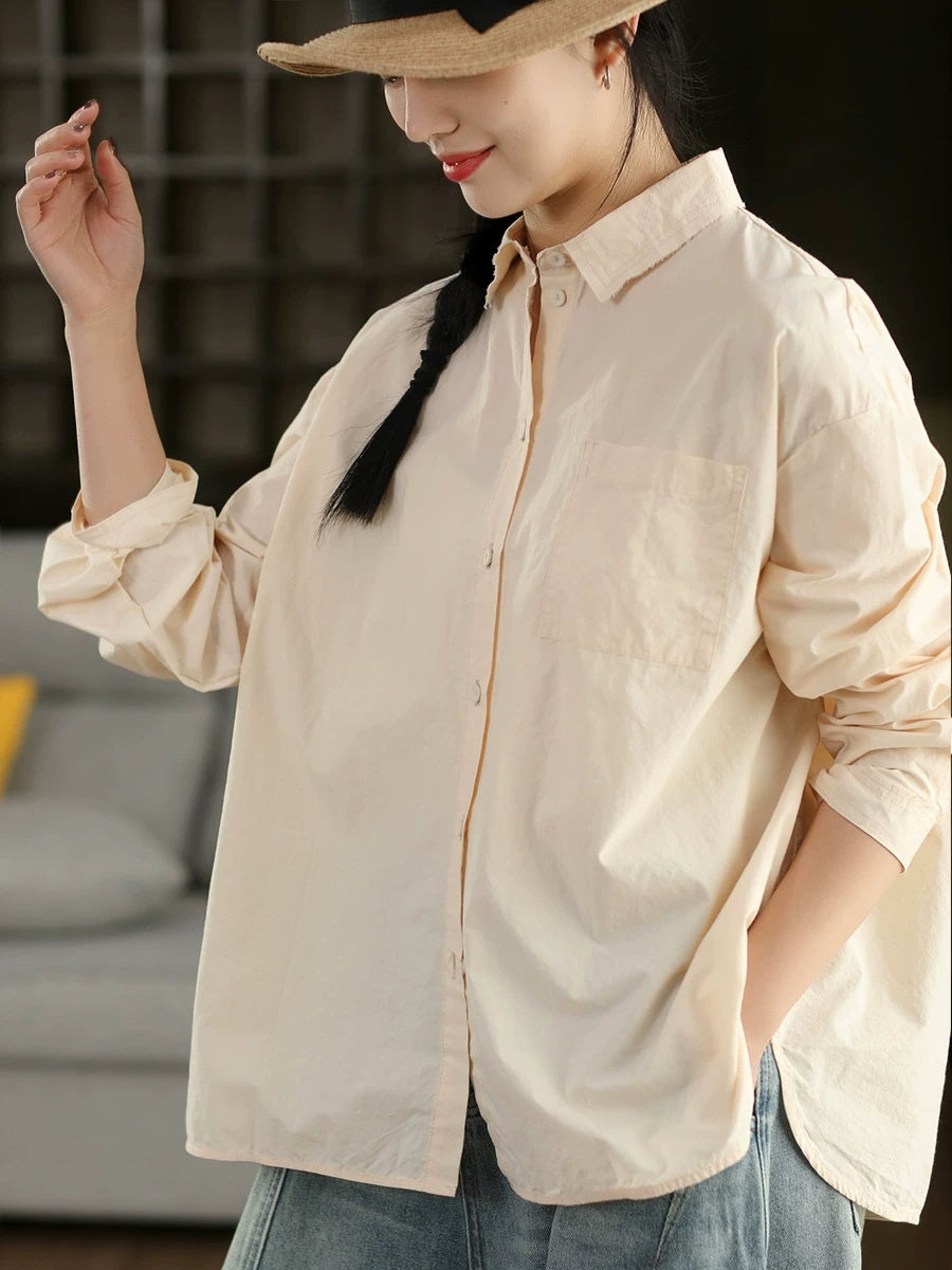 Cămașă de primăvară artistică, culoare pură, 100% bumbac