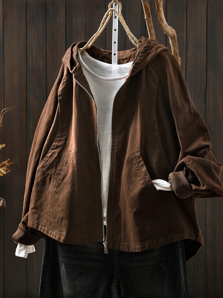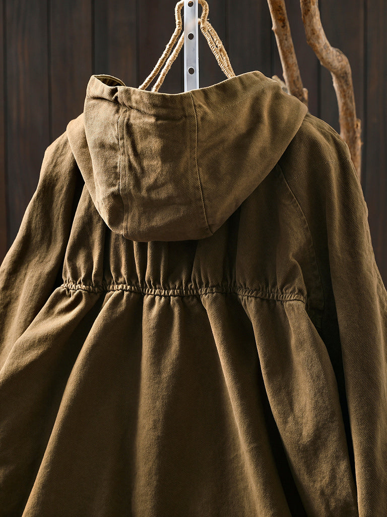 Palton de bumbac cu glugă în culoarea pură pentru femei, toamnă, casual