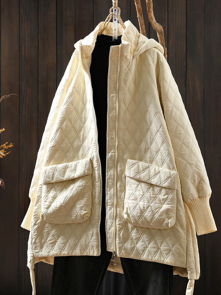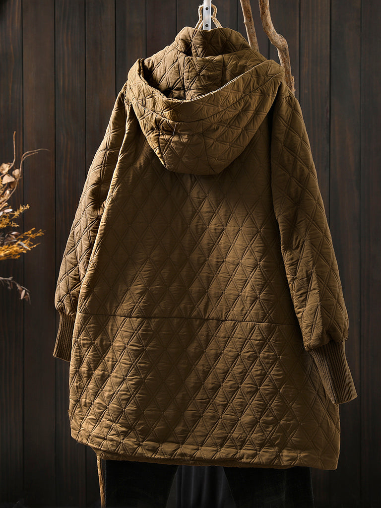 Palton de bumbac cu glugă și romburi casual pentru femei, toamnă