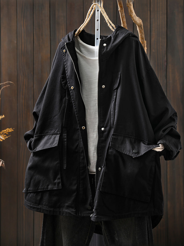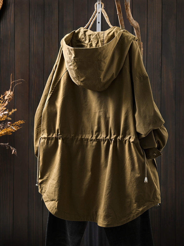 Palton cu glugă din bumbac 100%, culoare pură, pentru femei, toamnă