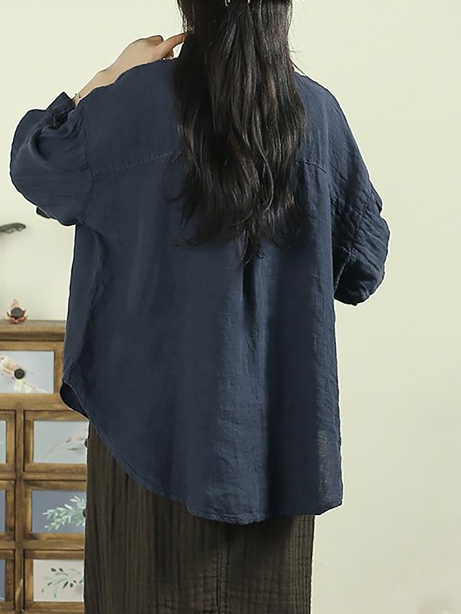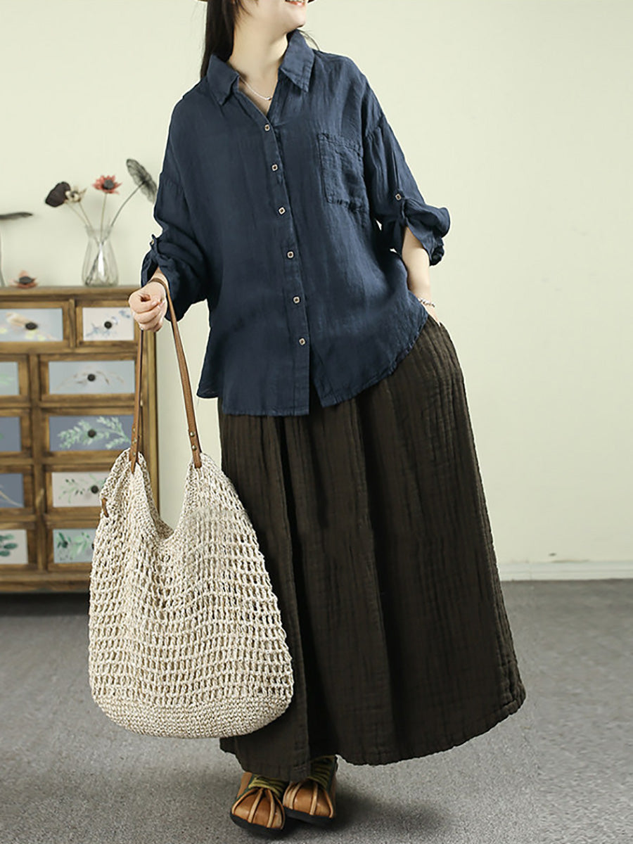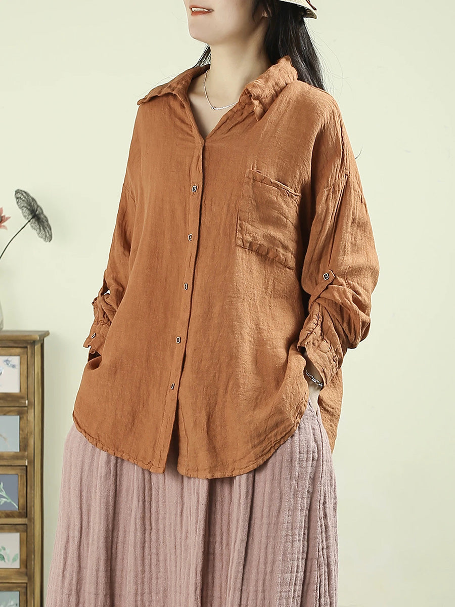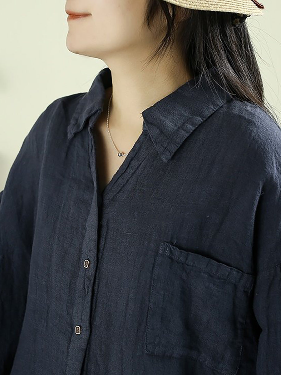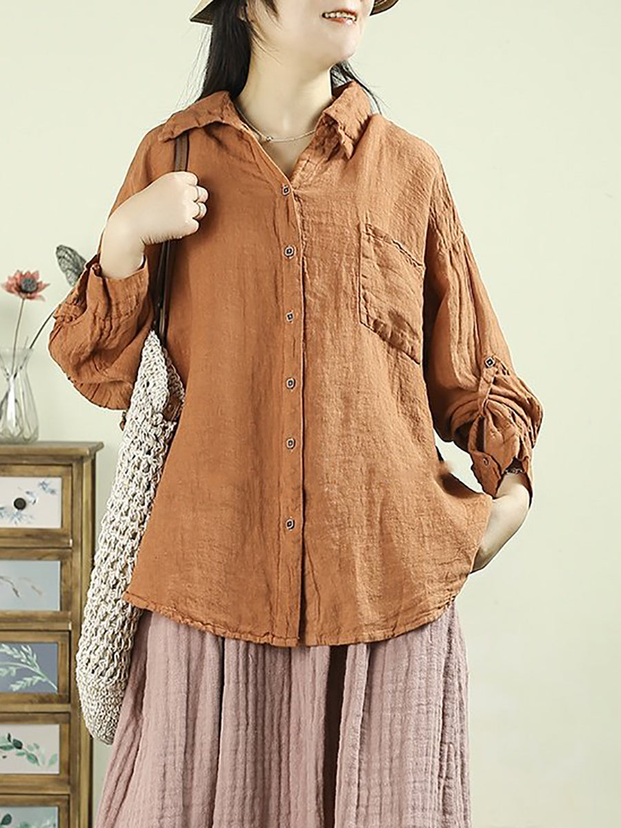 Cămașă de primăvară pentru femei, culoare pură, cu guler răsturnat, 100% in