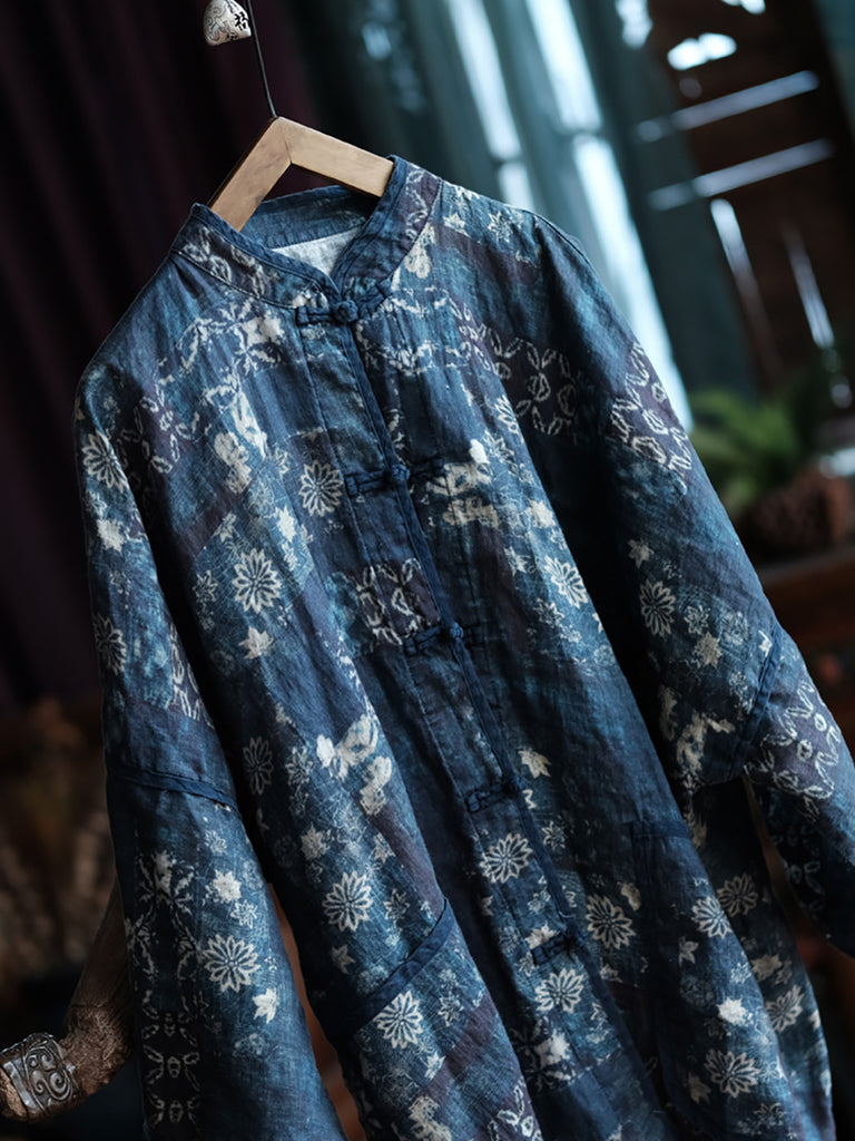 Confecționată din 100% in și având un model floral vintage, această cămașă de primăvară de damă are guler stand și mâneci raglan. Ideală pentru anotimpurile mai calde, această piesă elegantă și atemporală este un must-have pentru orice garderobă modernă.
