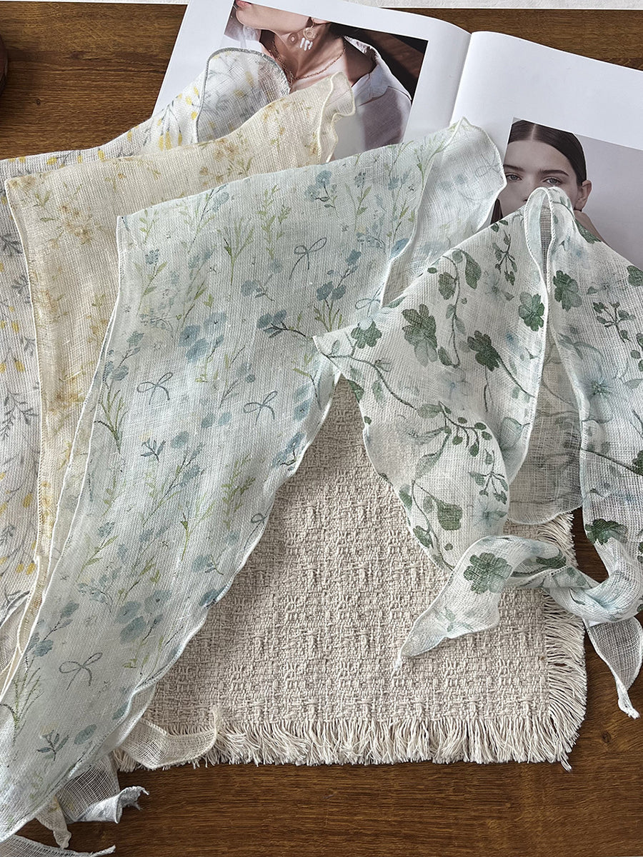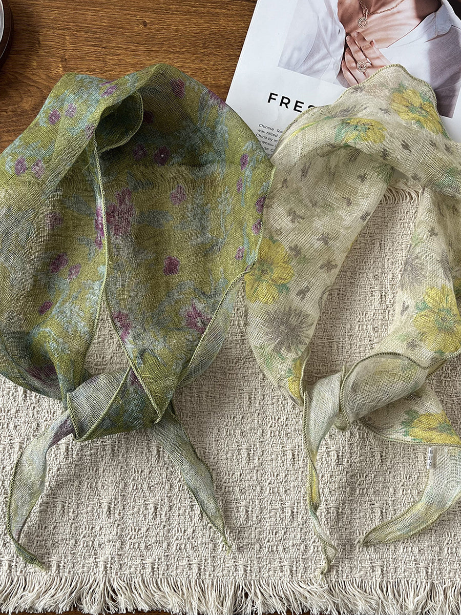 Eșarfă triunghiulară cu flori artistice de vară pentru femei