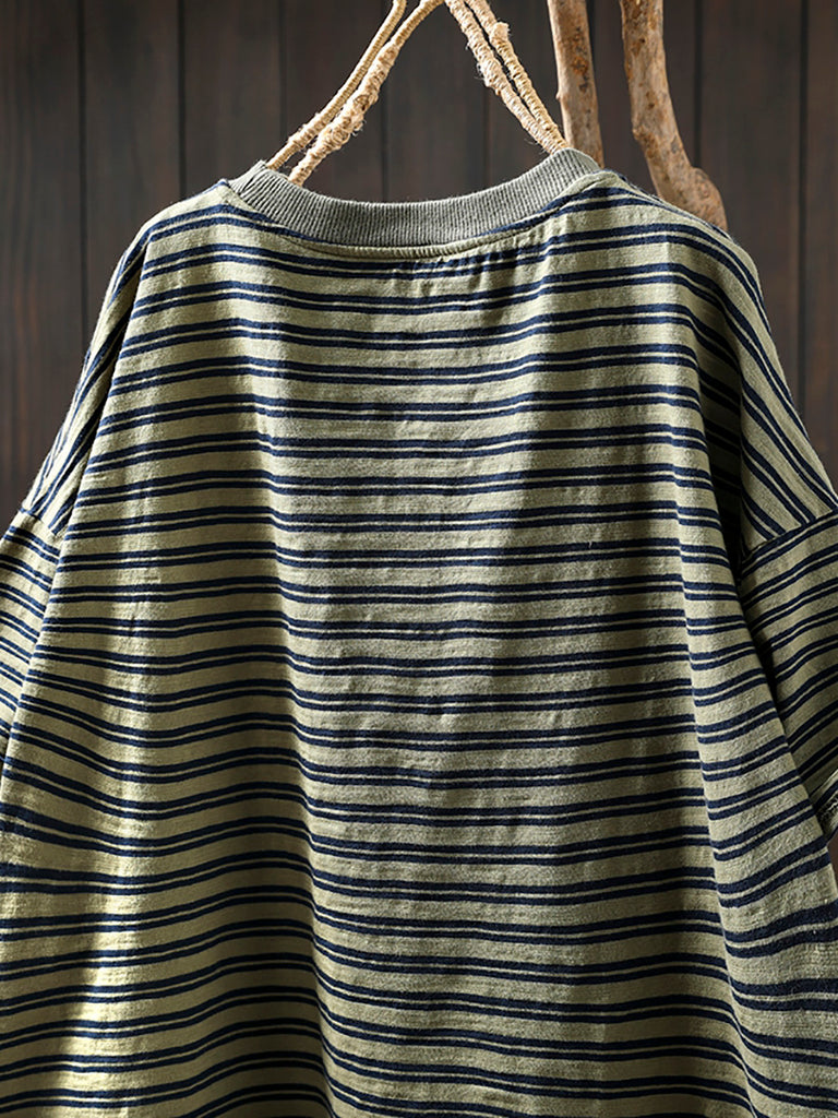 Tricou de vară casual cu dungi 100% bumbac, cu guler în O