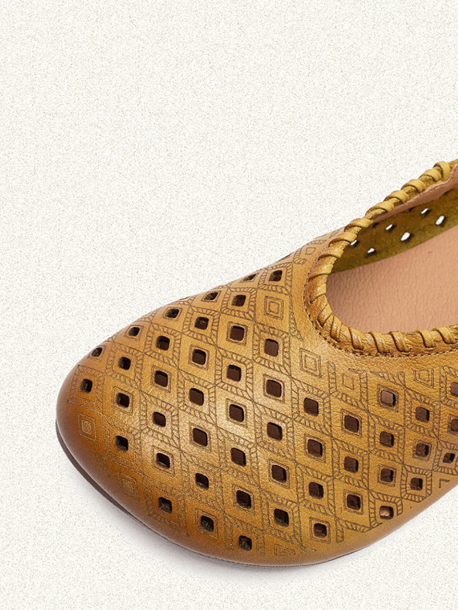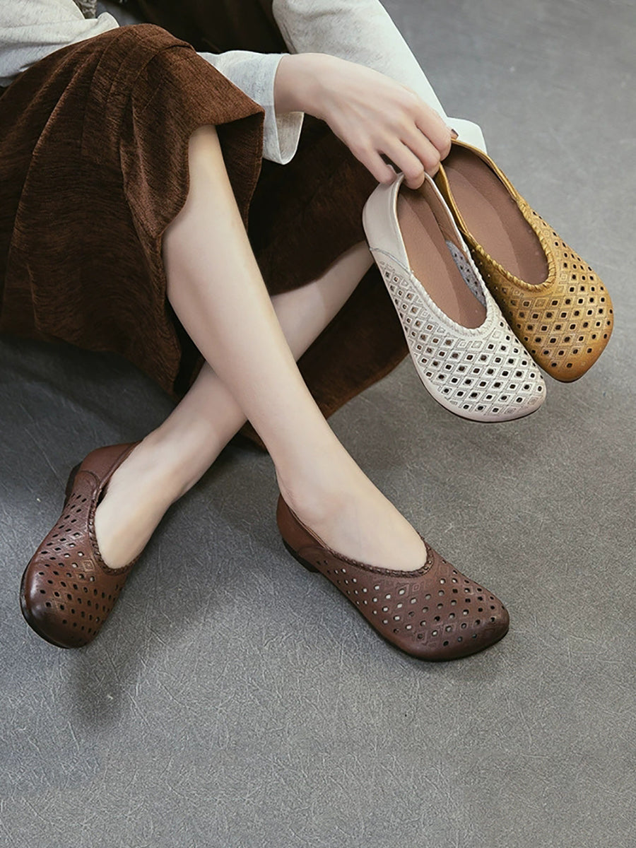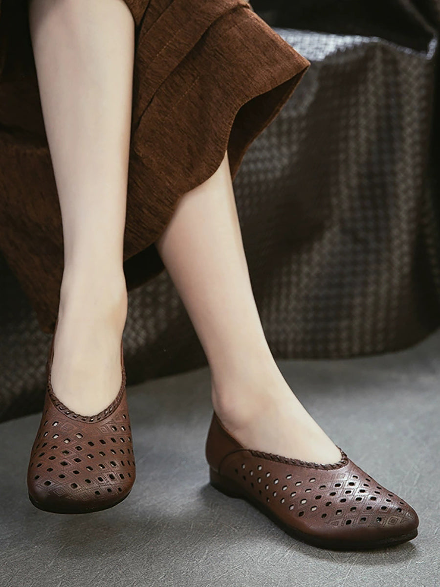 Sandale plate din piele cu găuri de vară pentru femei