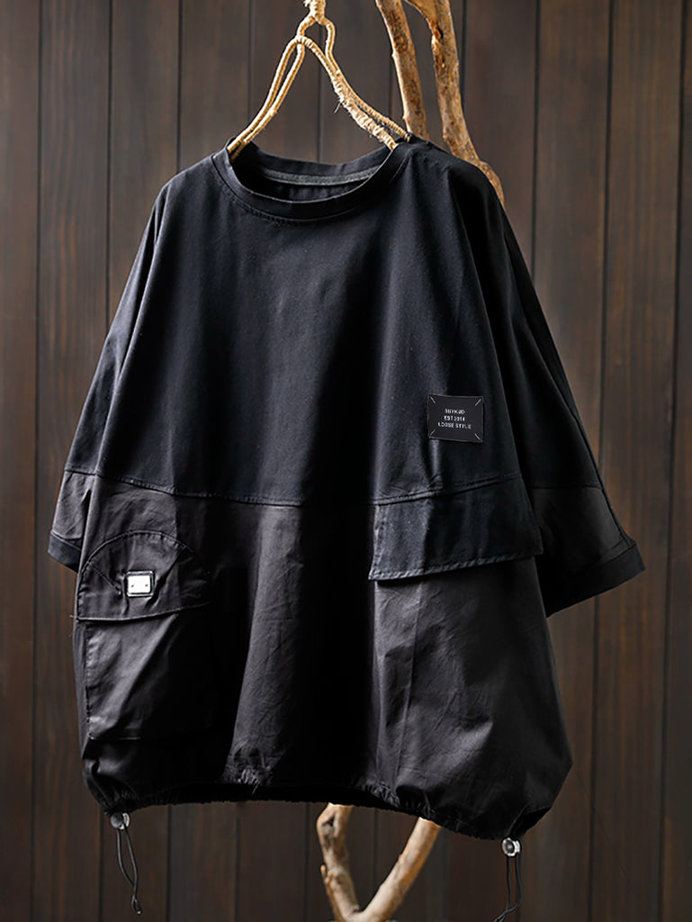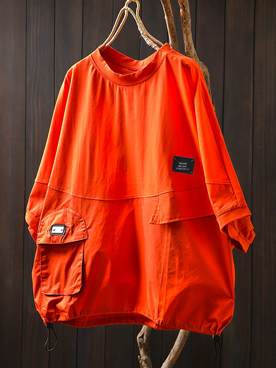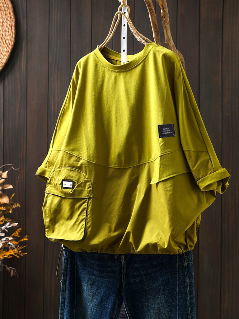 Tricou de bumbac cu guler O, culoare pură, pentru femei, mărime plus