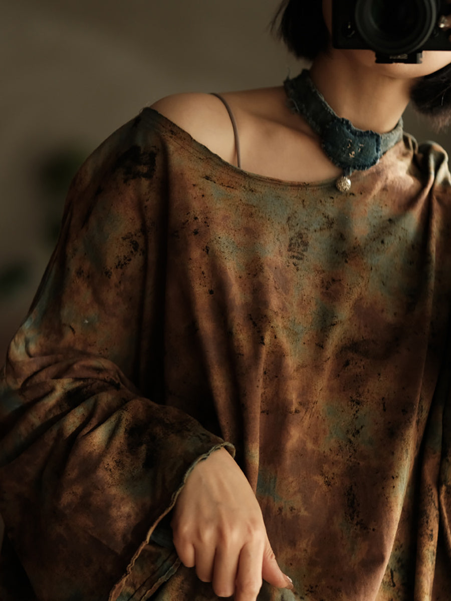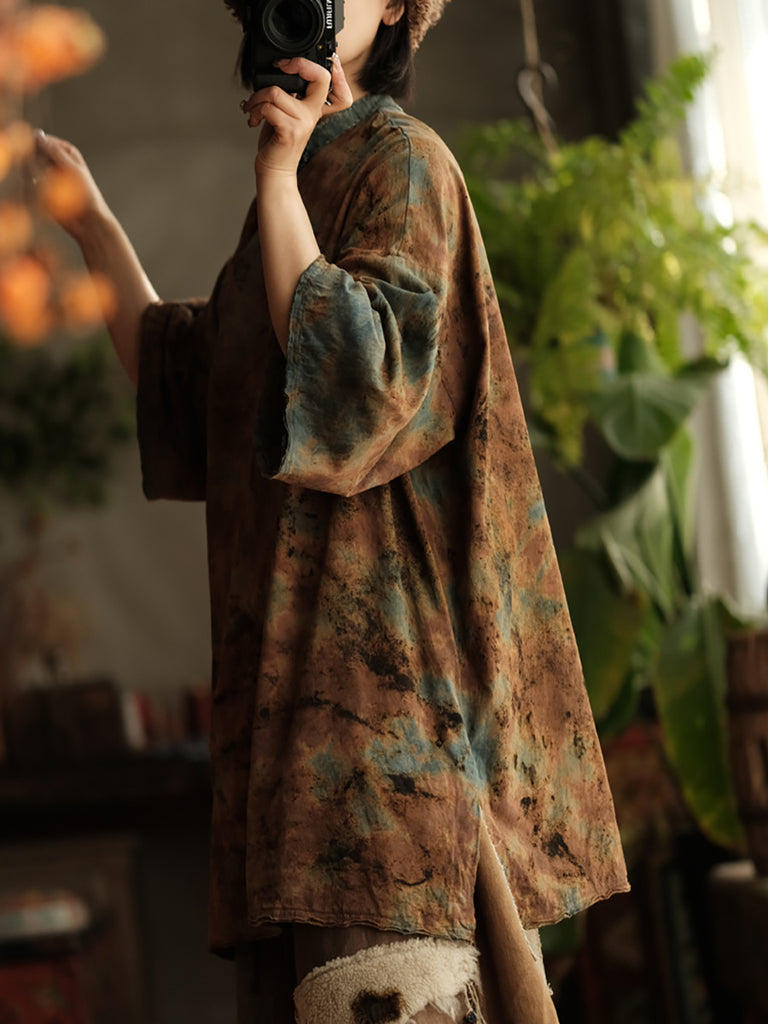 Cămașă din bumbac cu gât în formă de flori retro pentru femei