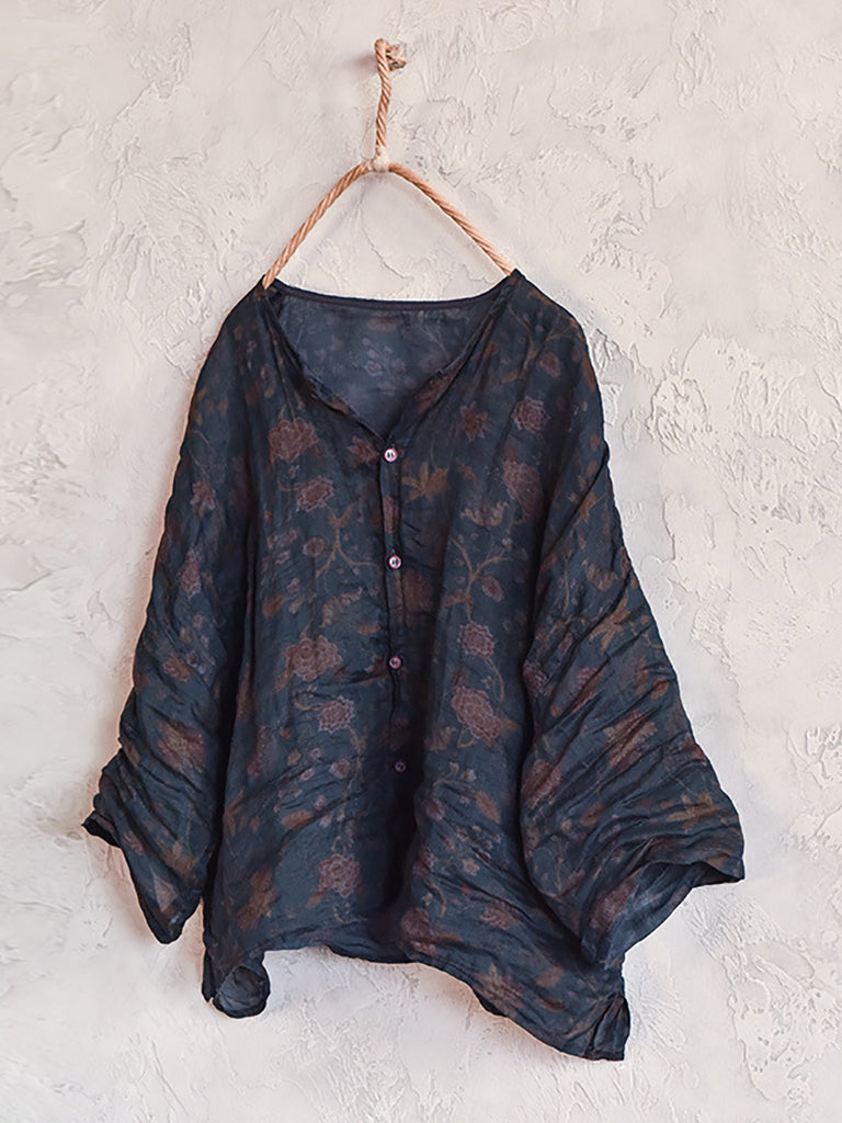 Confecționată din material 100% in, această cămașă de inspirație vintage are un model solid și un guler clasic cu gâtul O. Mânecile sale raglan pline sunt perfecte pentru sezonul de primăvară și vară, făcându-l un plus versatil pentru orice garderobă.