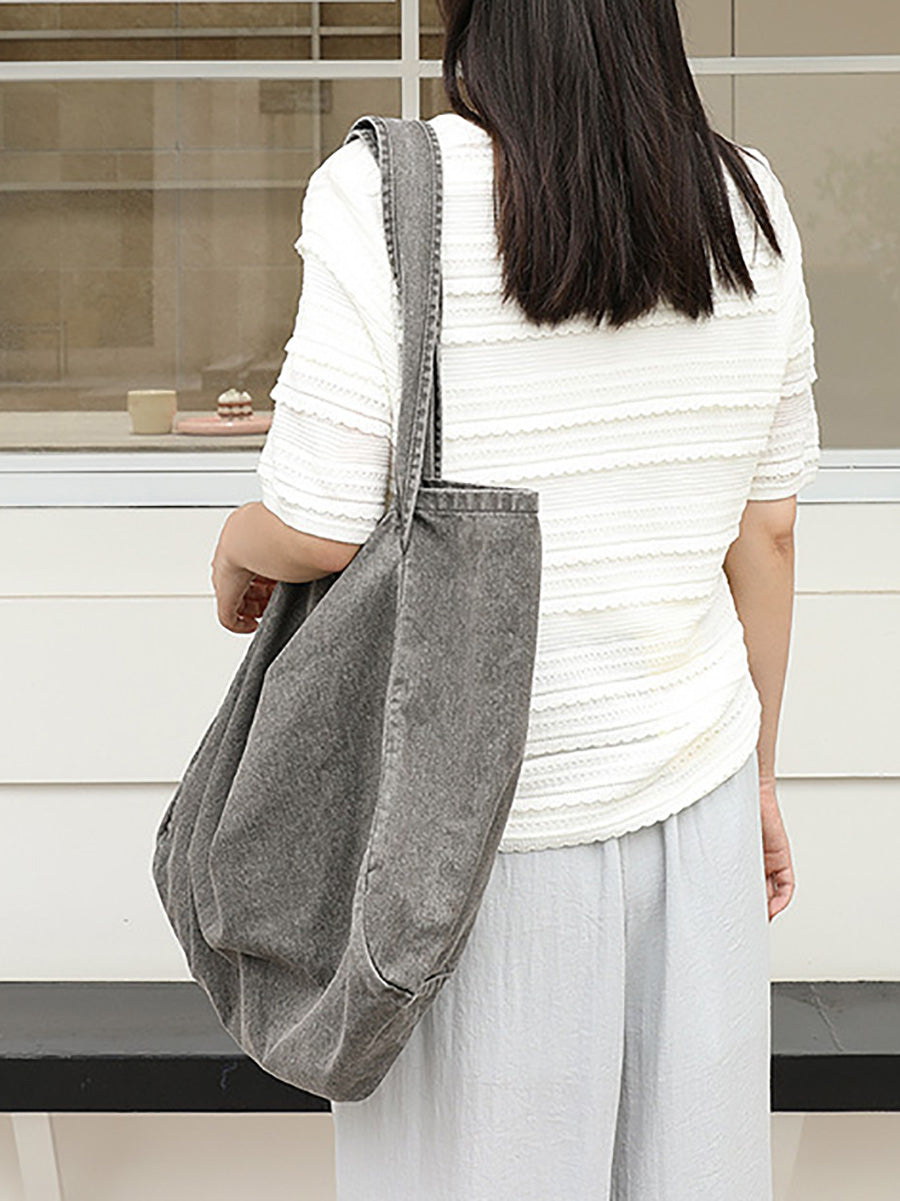 Geantă de umăr din pânză de mare capacitate vintage pentru femei