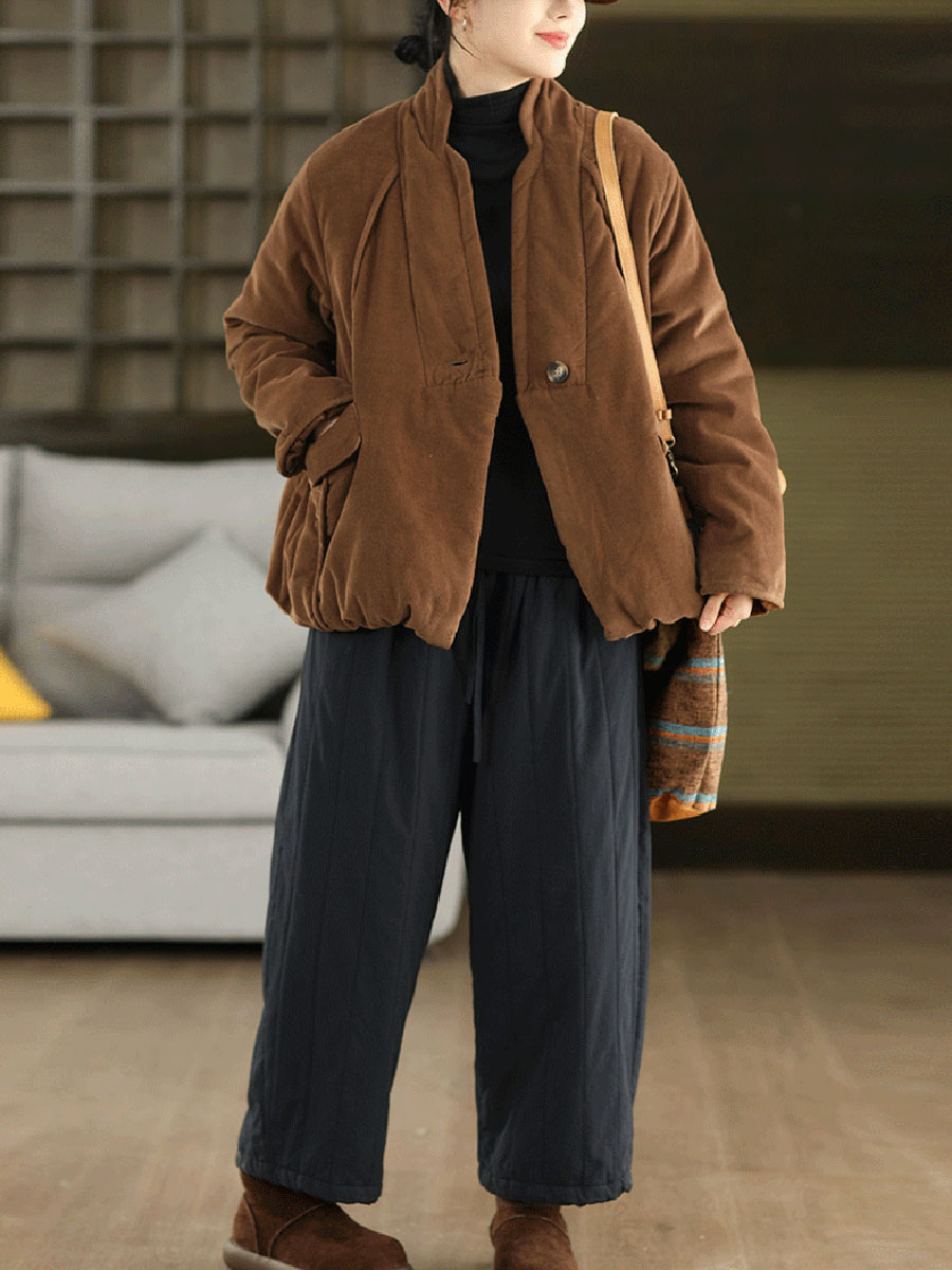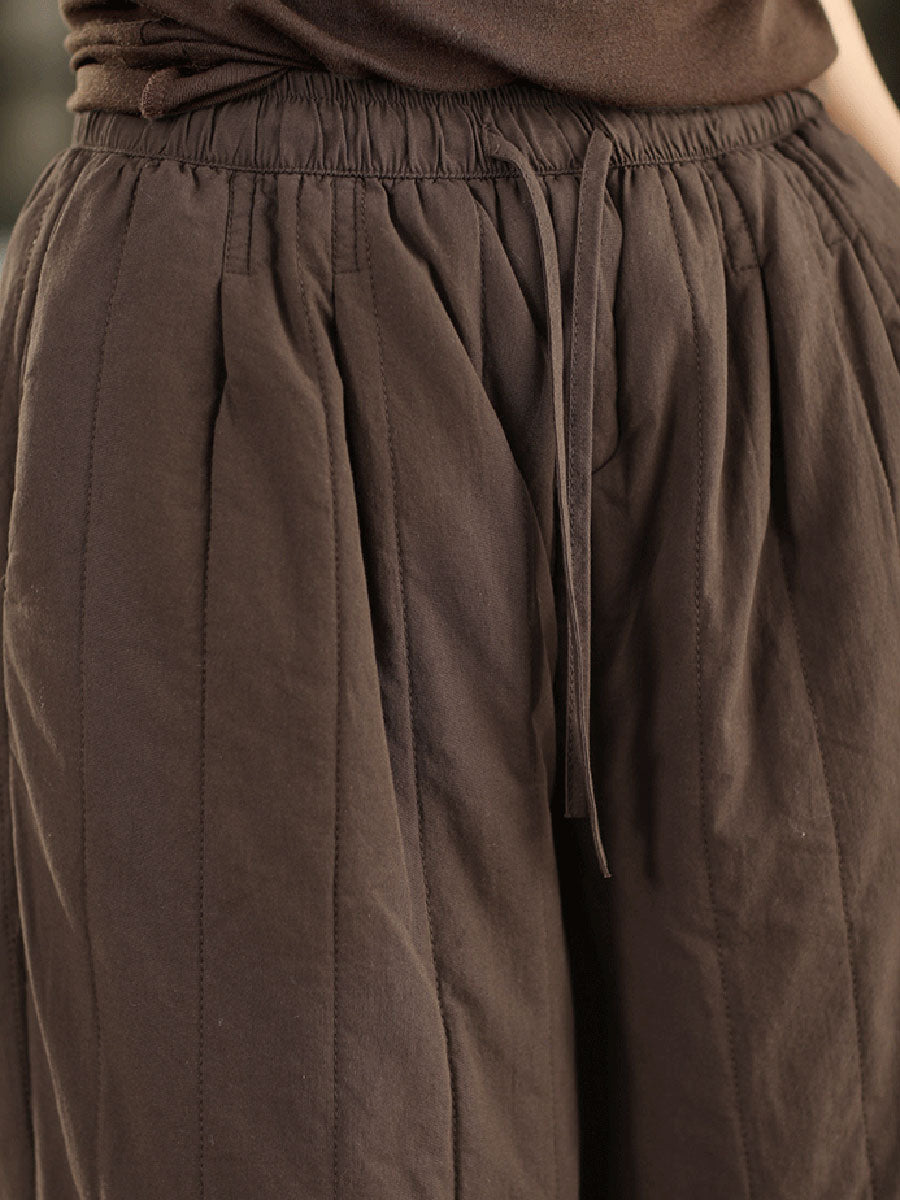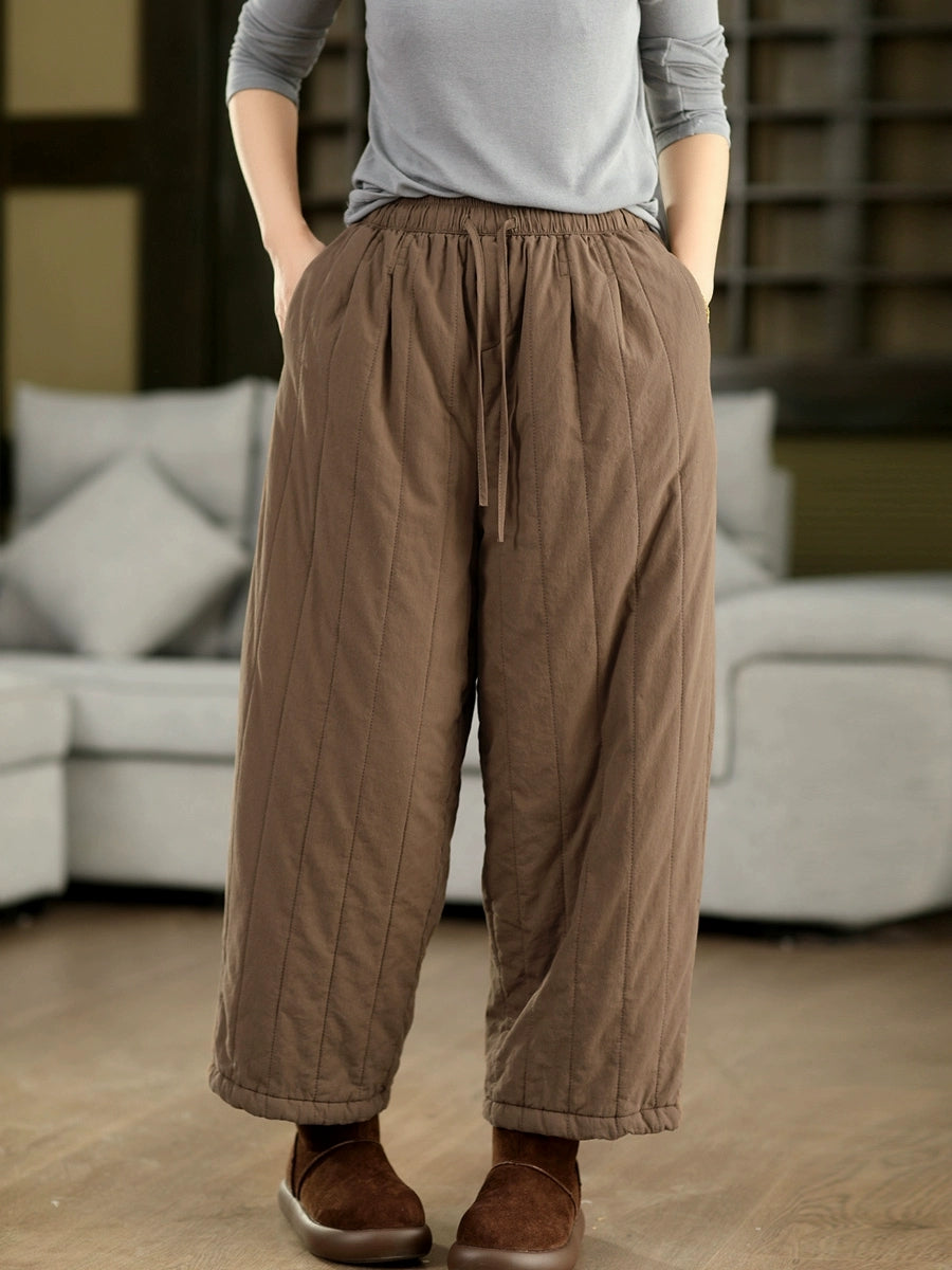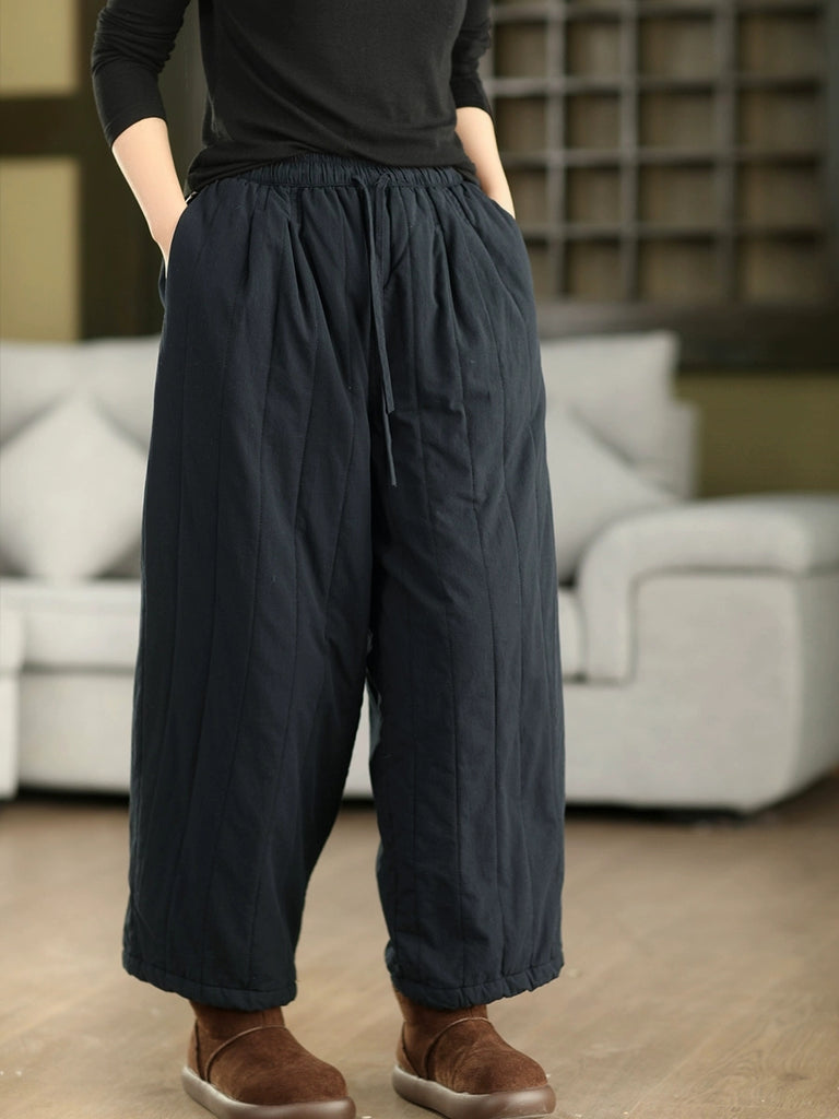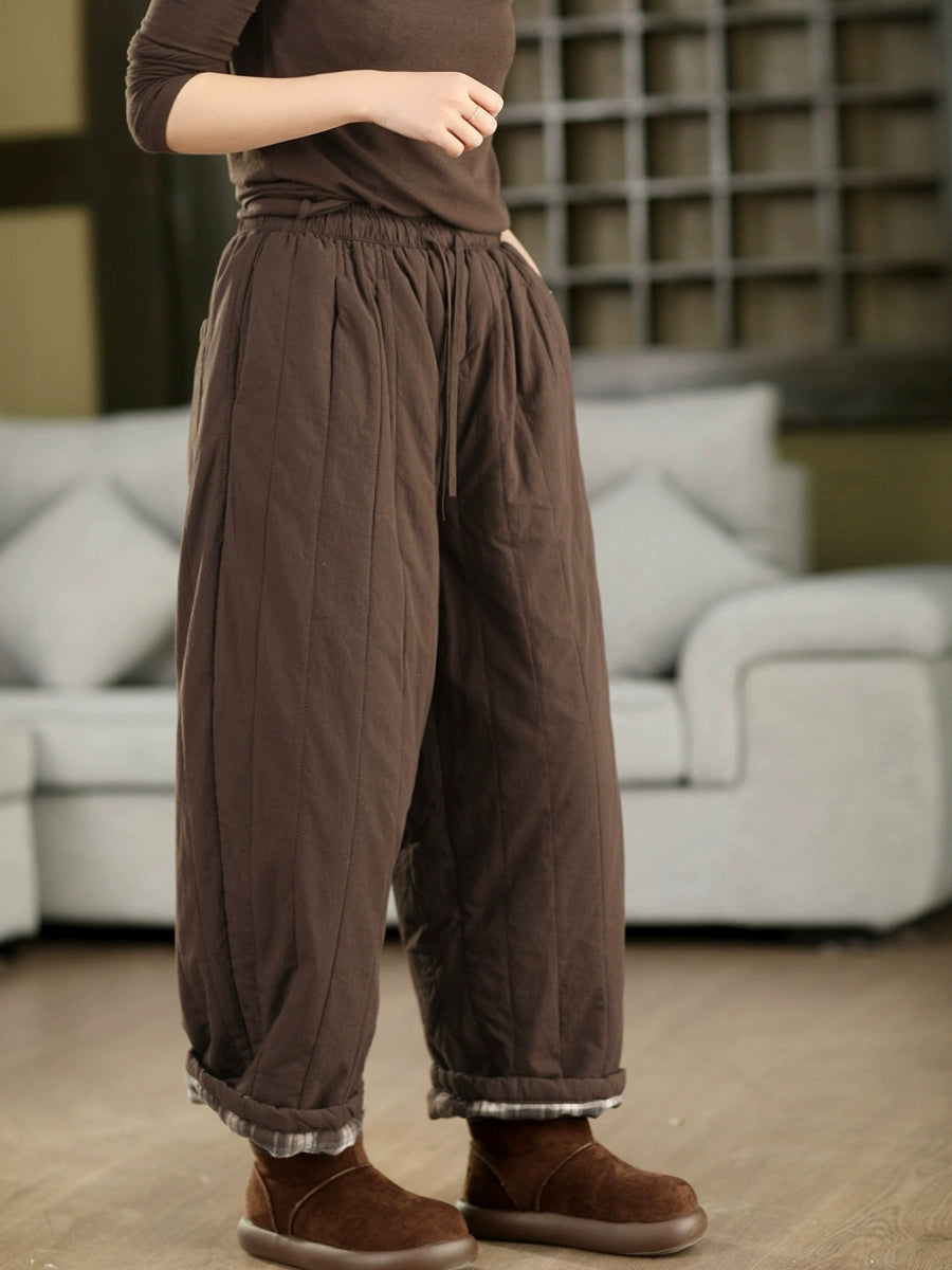 Pantaloni de iarnă retro pentru femei, culoare pură, 100% bumbac, căptușiți