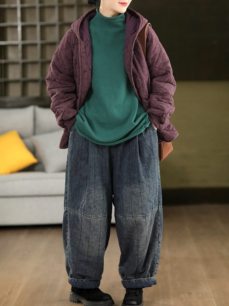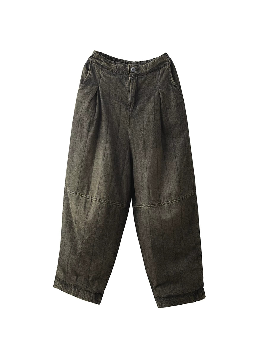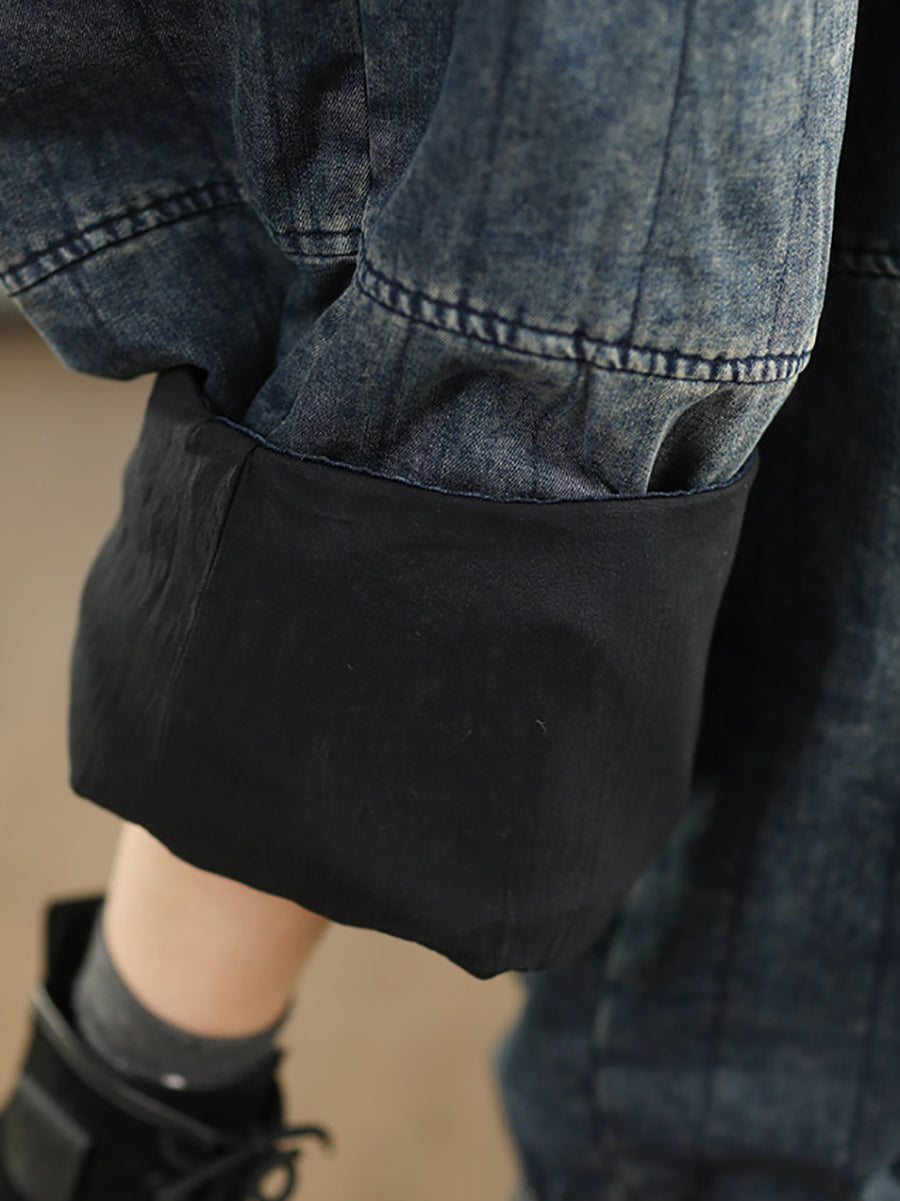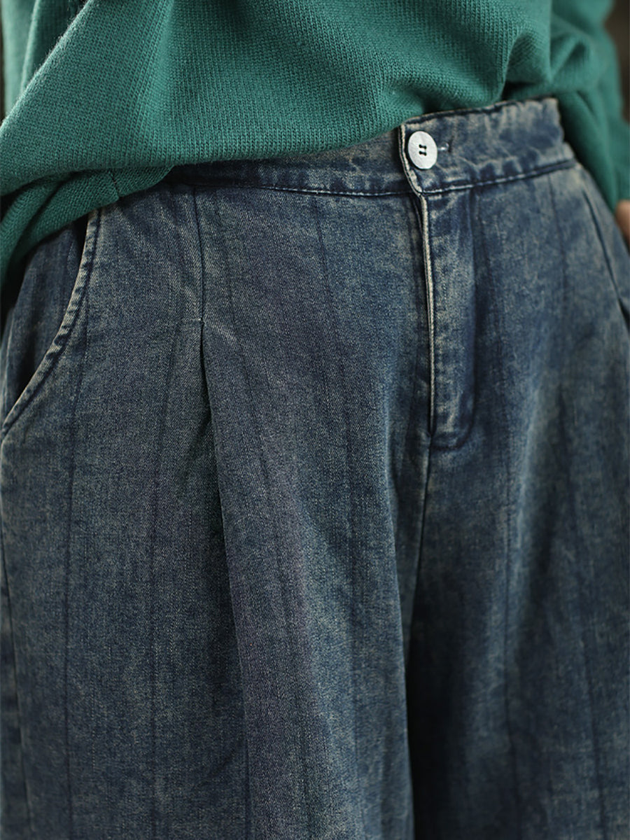 Pantaloni de iarnă retro spălați din denim căptușit pentru femei