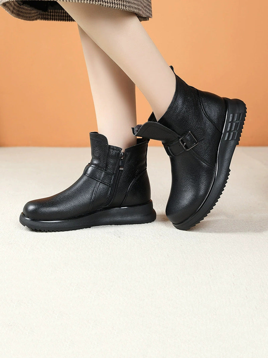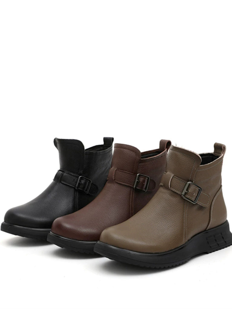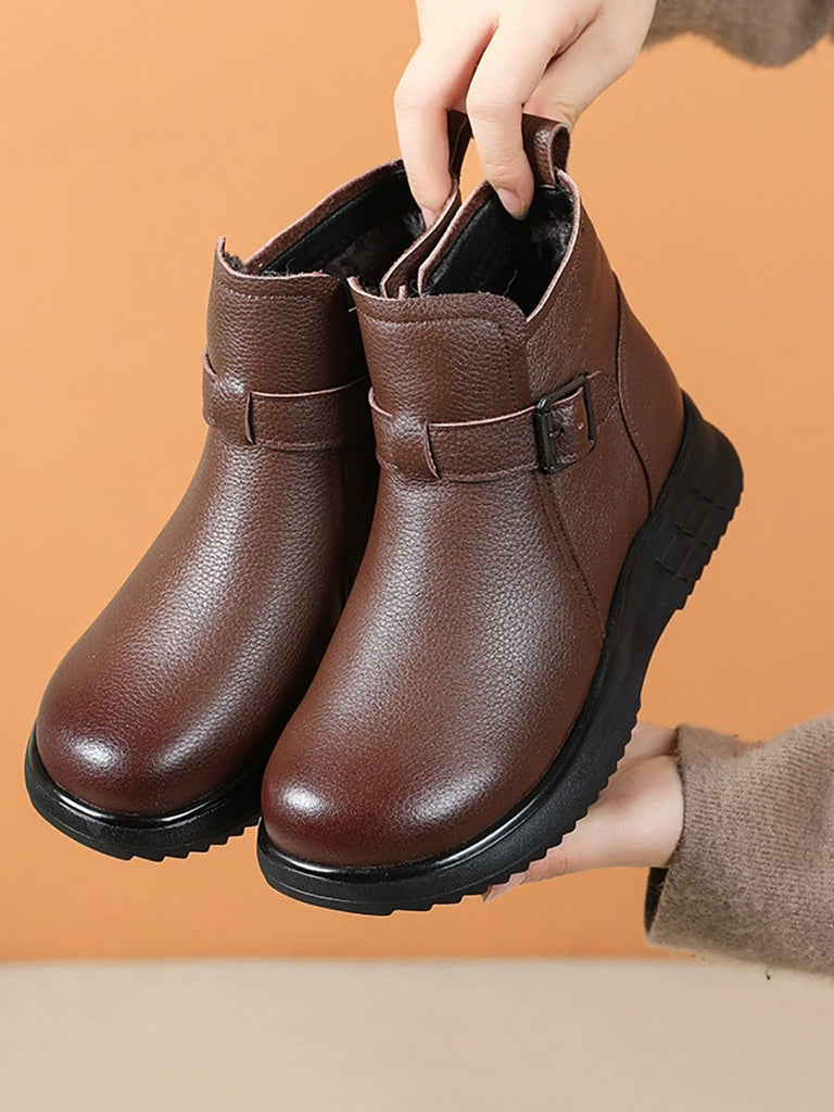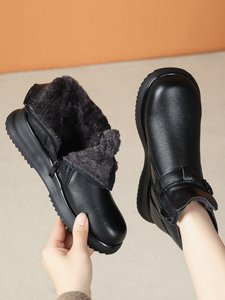 Ghete Martin pentru femei de iarnă din piele naturală, căptușite cu fleece