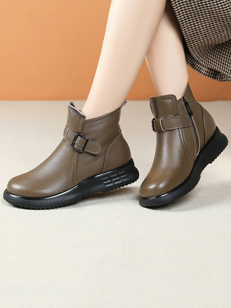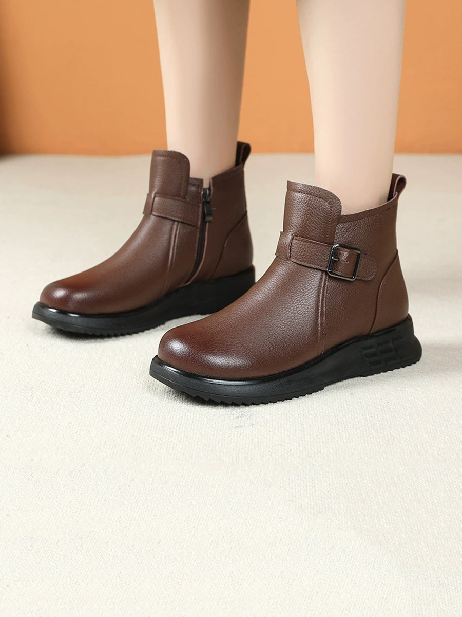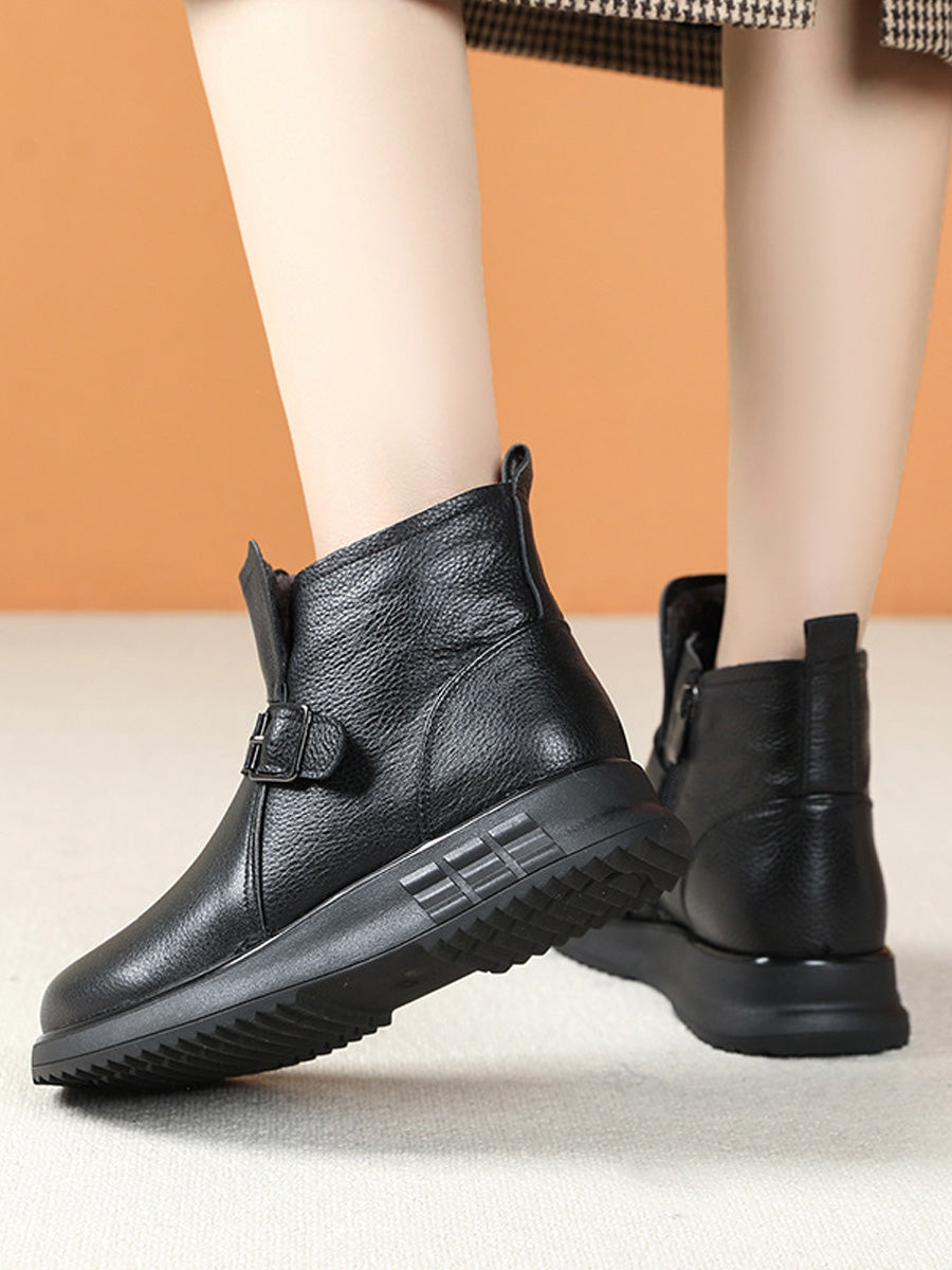 Ghete Martin pentru femei de iarnă din piele naturală, căptușite cu fleece