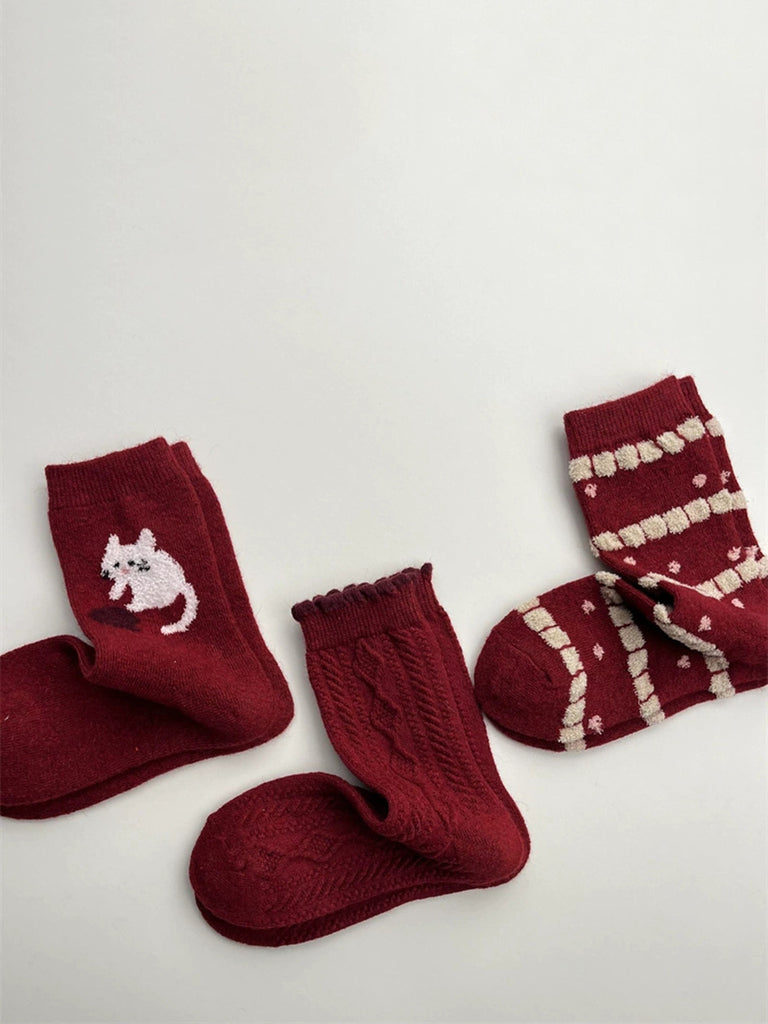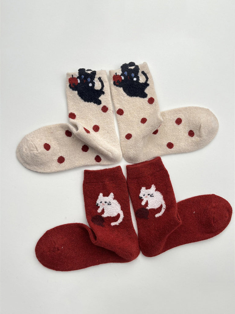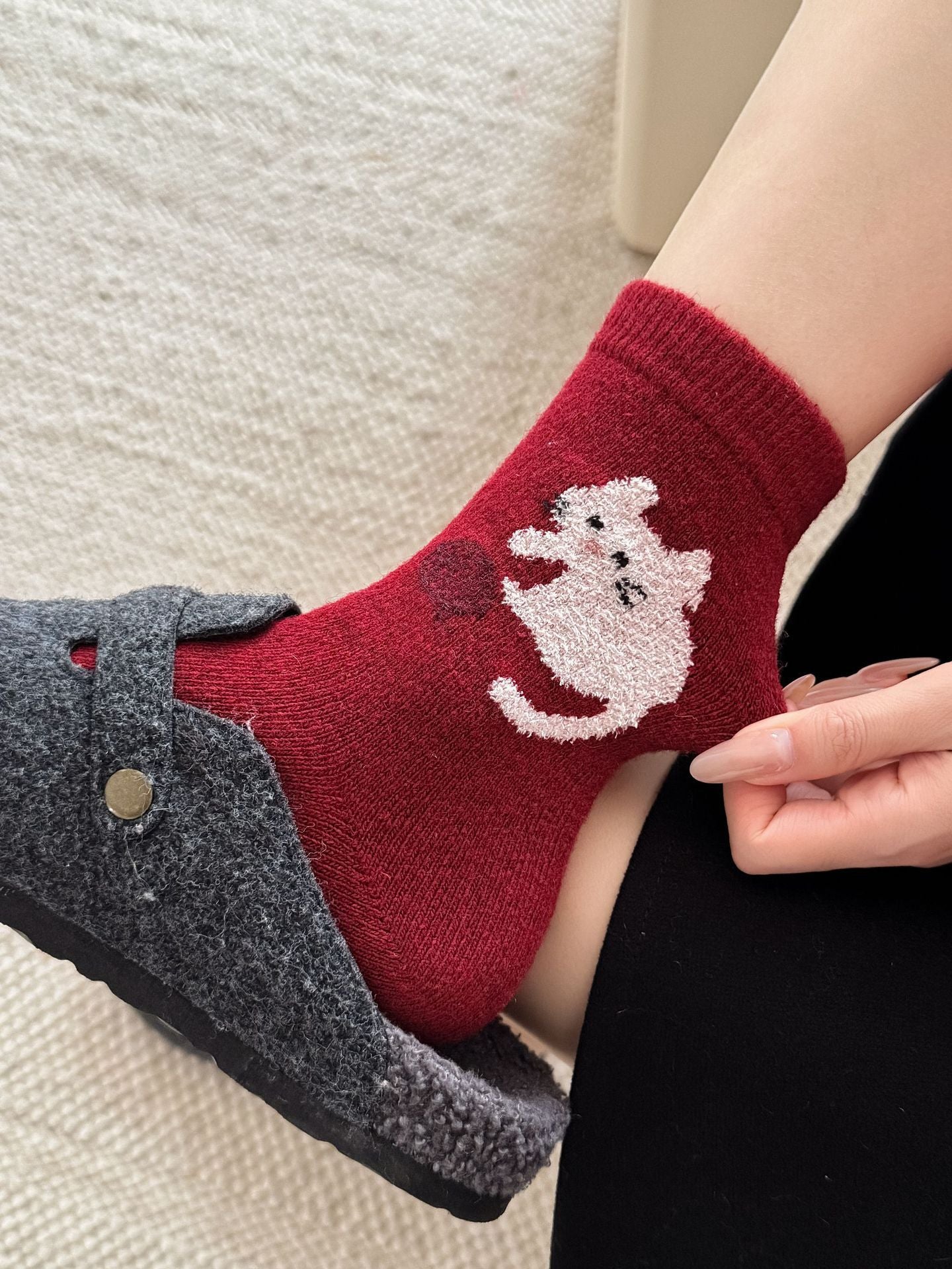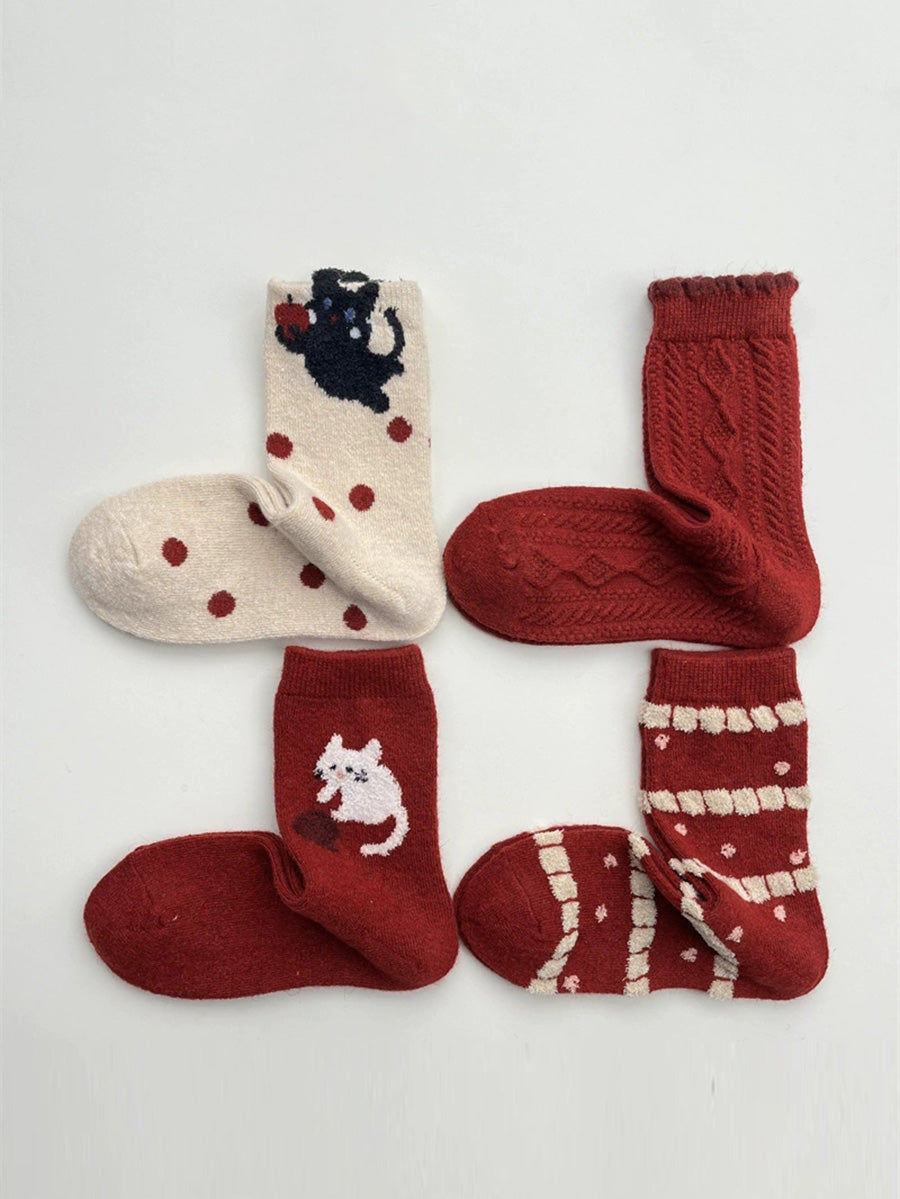 4 perechi de șosete calde de iarnă cu dungi drăguțe de pisică
